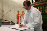 Sanitarne rygory i obostrzenia spowodowały, że uroczystość ślubowań br. Łukasza nabrała charakteru bardzo kameralnego i rodzinnego, ponieważ oprócz niego w sanktuarium znajdowali się Współbracia chrystusowcy koncelebrujący Mszę Świętą, asysta liturgiczna i posługujące w parafii Siostry Misjonarki. Oni to otoczyli neoprofesa swoją modlitwą. Cała liturgia natomiast była transmitowana przez facebookowy fanpage. Przewodniczył jej i z upoważnienia ks. Generała profesję odebrał ks. dr Jarosław Staszewski SChr, przełożony domu zakonnego w Szczecinie, kustosz sanktuarium NSPJ i proboszcz parafii. Kazanie wygłosił ks. Krzysztof Ośka SChr, który bezpośrednio przygotowywał przez ostatni tydzień naszego najmłodszego profesa wieczystego do tej ważnej chwili, jaką jest złożenie zakonnych ślubów. Brat Łukasz na pamiątkowym obrazku wypisał słowa św. Jana: „Panie, Ty wszystko wiesz, Ty wiesz, że Cię kocham” (J 21,17). Niech powyższe słowa wyryją się na jego sercu, a miłość do Chrystusa sprawi, aby stawał się wiernym uczniem w posłudze Jego Kościoła.