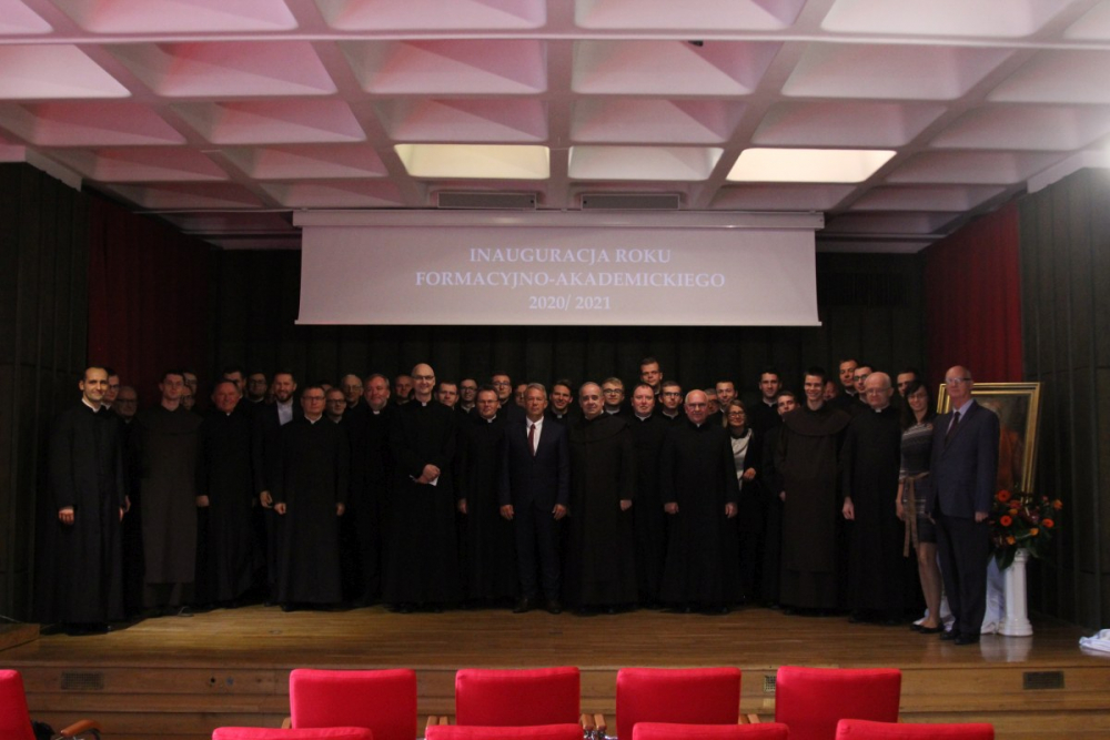 Po liturgii w auli odbywała się dalsza część uroczystości inauguracyjnych: po zaśpiewaniu tradycyjnego Gaude Mater Polonia…, ks. dr Jan Hadalski SChr, rektor seminarium, w przemówieniu powitalnym nawiązał do okoliczności i kameralnego charakteru tych uroczystości. Nakreślił również tematykę podejmowanych działań formacyjnych w bieżącym roku, która ściśle powiązana jest z duszpasterskim programem zaproponowanym przez polskich biskupów pt. „Eucharystia daje życie”. Przywołując słowa Kardynała Założyciela, który zachęcał, iż trzeba się więcej skupiać koło ołtarza i tabernakulum, by stamtąd odchodzić […] z błyskiem życia, światła Bożego. (A. HLOND, «Nowe czasy». Myśli wypowiedziane do Ojca Ignacego w Warszawie dnia 16 sierpnia 1946 r., w: „Acta Hlondiana”, t. II, cz. 2, s. 180-182; I. POSADZY, Nowe Czasy. 31. List Okrężny, w: I. POSADZY, „Listy Okrężne. Cz. II”, red. B. KOŁODZIEJ, Poznań 1991, s. 48-51), ks. Rektor wskazywał na Eucharystię jako nasze codzienne święto i źródło uświęcenia. To też stanie się właśnie leitmotivem tegorocznego programu formacyjnego. Potem ks. dr Paweł Jasina SChr, prefekt seminarium przedstawił sprawozdanie z działalności w poprzednim roku formacyjnym uwzględniając zdalną formę przeprowadzenia niektórych zajęć w semestrze wiosennym.