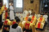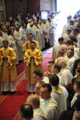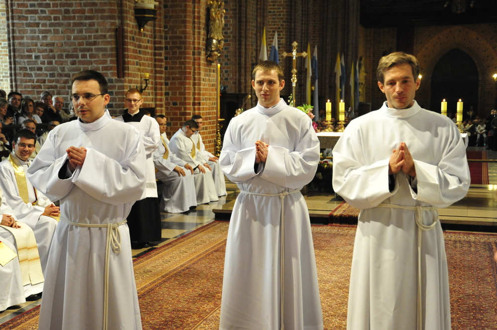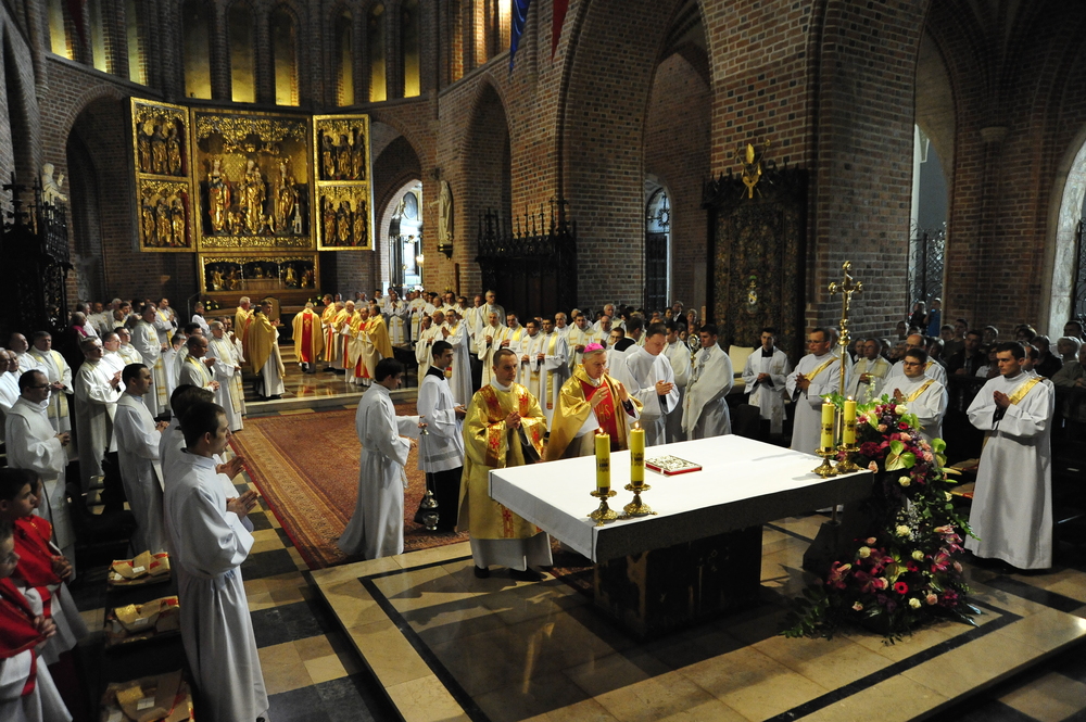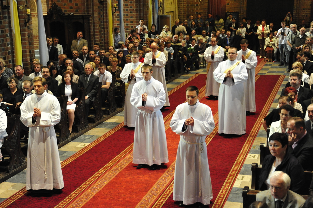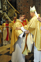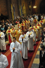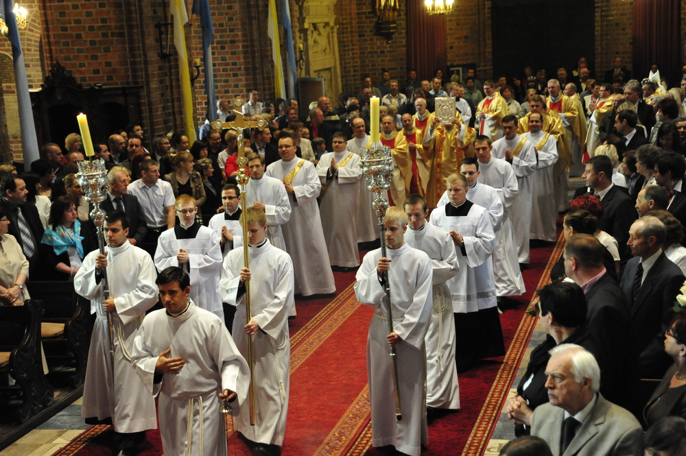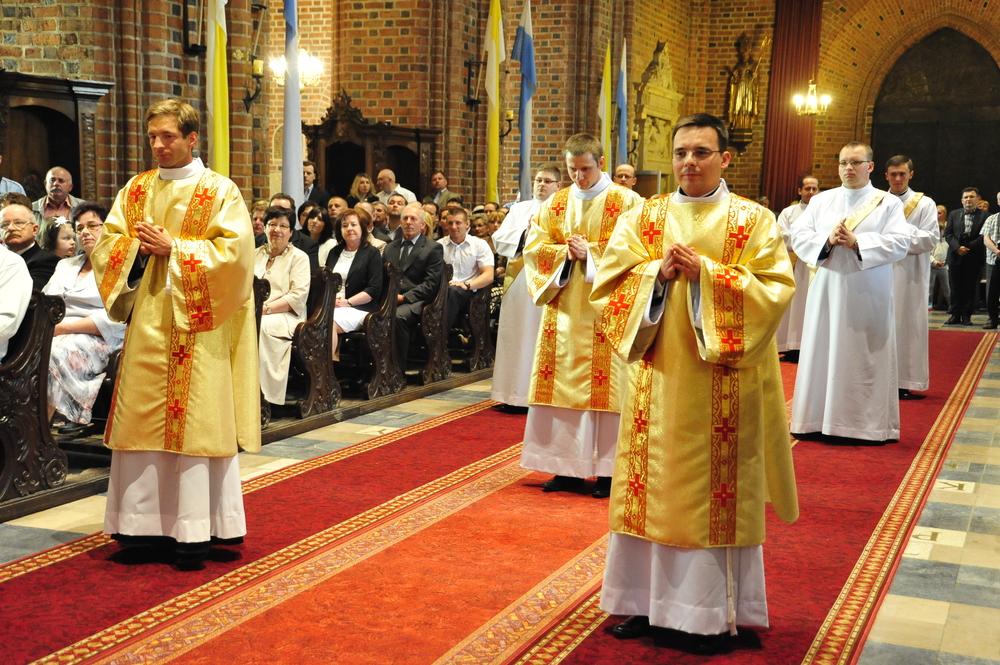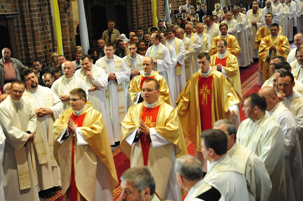„Dzień święceń prezbiteratu i diakonatu każdego roku jest punktem kulminacyjnym dla naszej wspólnoty zakonnej – Towarzystwa Chrystusowego dla Polonii Zagranicznej. Wydarzeniem świętym, pięknym wspólnym duchowym owocem: owocem działania Pana Boga, który wybiera, powołuje i kształtuje nowych szafarzy łaski; owocem odpowiedzi i niełatwego wysiłku powołanego – w rozeznaniu i rozwinięciu swojego powołania; owocem procesu formacji w ramach wspólnoty zakonnej, kształtującej wiarę i charyzmat powołanego; owocem miłości rodziców, rodziny i przyjaciół podtrzymujących i wspierających swego syna, wnuka, brata, kolegę” – tak mówił dzisiaj (wtorek, 21.05.2013) rektor Wyższego Seminarium Duchownego naszego zgromadzenia ks. Bogusław Burgat we wprowadzeniu do uroczystej Mszy Świętej połączonej z udzieleniem święceń prezbiteratu pięciu diakonom i świeceń diakonatu trzem akolitom naszego zgromadzenia. Eucharystia rozpoczęła się o godz. 10.00 w bazylice archikatedralnej w Poznaniu pod przewodnictwem ks. bpa Grzegorza Balcerka – biskupa pomocniczego archidiecezji poznańskiej. Mszę koncelebrowali przełożeni Towarzystwa Chrystusowego z księdzem generałem Tomaszem Sielickim na czele, prowincjałowie Towarzystwa z Australii, Francji, Stanów Zjednoczonych i Wielkiej Brytanii, rektor PWT w Warszawie, wychowawcy seminaryjni, wielu współbraci chrystusowców z różnych stron świata oraz zaprzyjaźnieni kapłani diecezjalni i zakonni. W sumie ponad 100 kapłanów. Wyświęcanych diakonów i prezbiterów modlitwą i życzliwością otaczali także rodzice, krewni i przyjaciele, siostry zakonne, bracia, nowicjusze i klerycy Towarzystwa Chrystusowego. W homilii bp Balcerek nawiązał do szczególnego miejsca, jakim jest poznańska katedra, gdzie pochowani są pierwsi władcy Polski – Mieszko I i Bolesław Chrobry i gdzie niejako rodziła się polska państwowość i organizacja Kościoła na ziemiach piastowskich. Do młodych chrystusowców, którzy dziś wyświęceni za kilka lat wyjadą do pracy wśród Polonii na całym świecie i wszystkich innych, którzy już wśród Polonii pracują Biskup mówił, aby tę polskość i katolicką wiarę nieśli wszędzie tam, gdzie ich Bóg pośle, aby tej wiary i polskości się nie wstydzili.