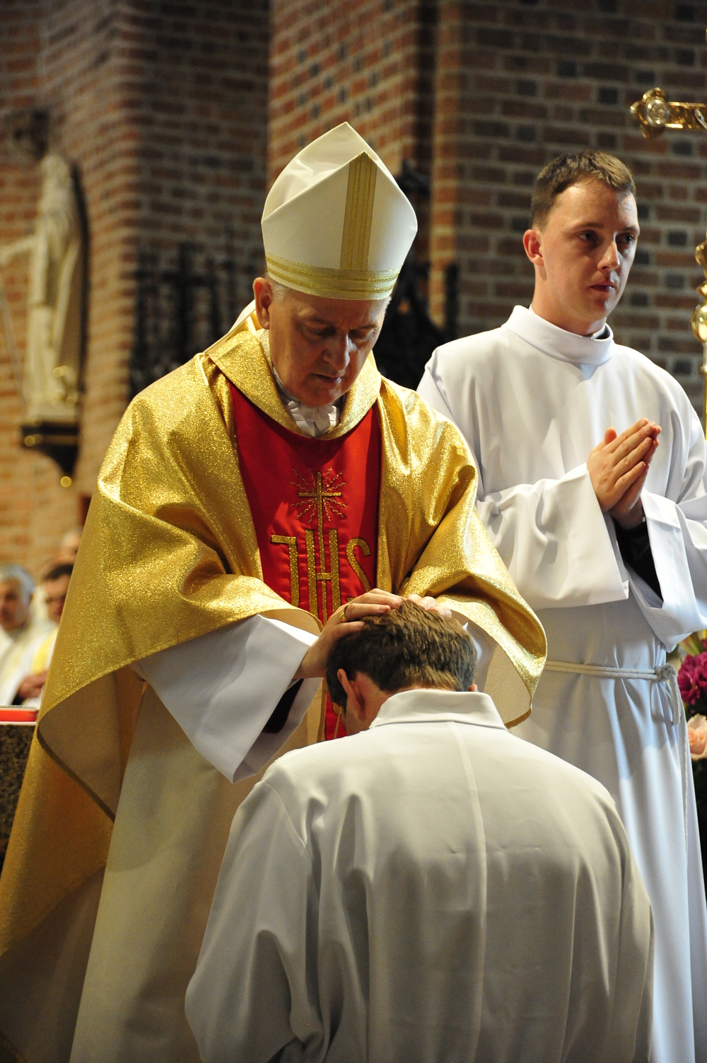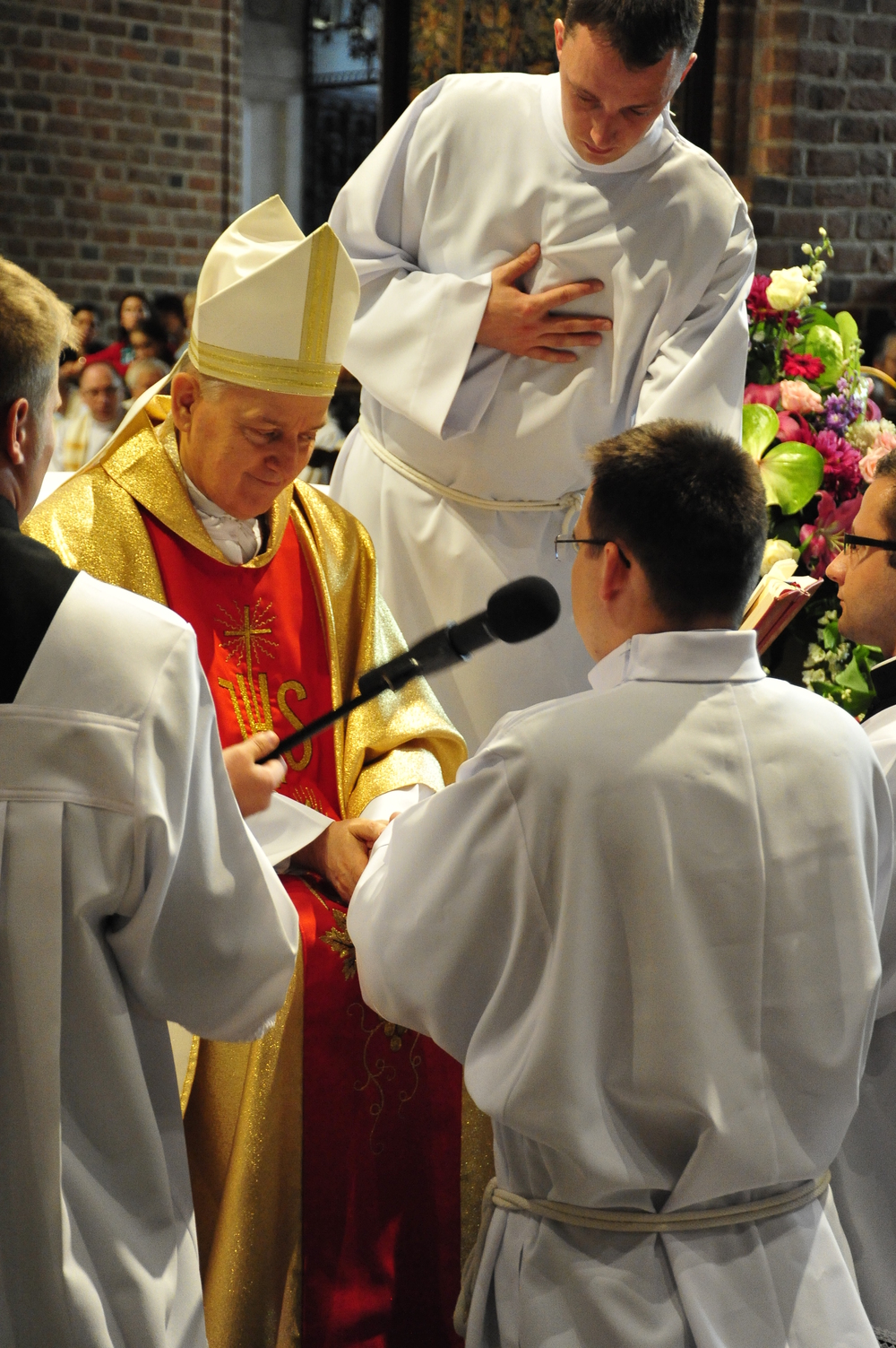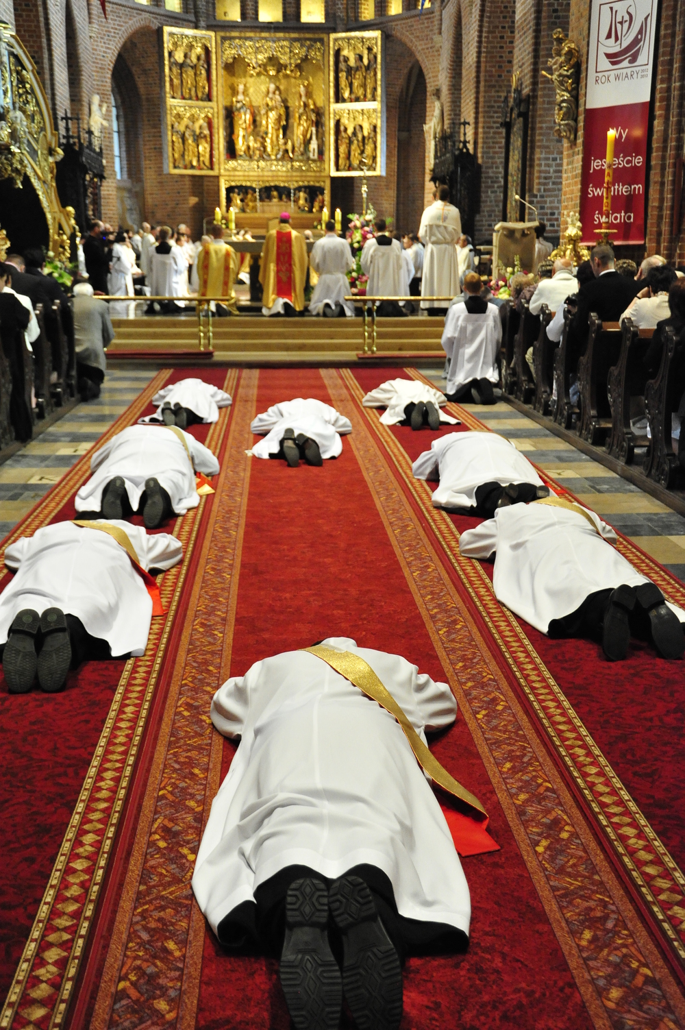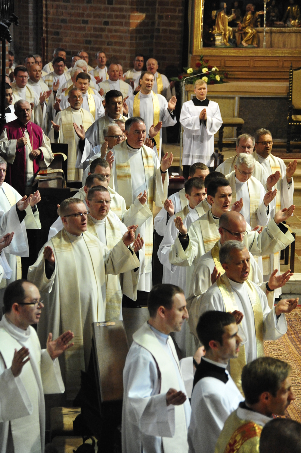 „Dzień święceń prezbiteratu i diakonatu każdego roku jest punktem kulminacyjnym dla naszej wspólnoty zakonnej – Towarzystwa Chrystusowego dla Polonii Zagranicznej. Wydarzeniem świętym, pięknym wspólnym duchowym owocem: owocem działania Pana Boga, który wybiera, powołuje i kształtuje nowych szafarzy łaski; owocem odpowiedzi i niełatwego wysiłku powołanego – w rozeznaniu i rozwinięciu swojego powołania; owocem procesu formacji w ramach wspólnoty zakonnej, kształtującej wiarę i charyzmat powołanego; owocem miłości rodziców, rodziny i przyjaciół podtrzymujących i wspierających swego syna, wnuka, brata, kolegę” – tak mówił dzisiaj (wtorek, 21.05.2013) rektor Wyższego Seminarium Duchownego naszego zgromadzenia ks. Bogusław Burgat we wprowadzeniu do uroczystej Mszy Świętej połączonej z udzieleniem święceń prezbiteratu pięciu diakonom i świeceń diakonatu trzem akolitom naszego zgromadzenia. Eucharystia rozpoczęła się o godz. 10.00 w bazylice archikatedralnej w Poznaniu pod przewodnictwem ks. bpa Grzegorza Balcerka – biskupa pomocniczego archidiecezji poznańskiej. Mszę koncelebrowali przełożeni Towarzystwa Chrystusowego z księdzem generałem Tomaszem Sielickim na czele, prowincjałowie Towarzystwa z Australii, Francji, Stanów Zjednoczonych i Wielkiej Brytanii, rektor PWT w Warszawie, wychowawcy seminaryjni, wielu współbraci chrystusowców z różnych stron świata oraz zaprzyjaźnieni kapłani diecezjalni i zakonni. W sumie ponad 100 kapłanów. Wyświęcanych diakonów i prezbiterów modlitwą i życzliwością otaczali także rodzice, krewni i przyjaciele, siostry zakonne, bracia, nowicjusze i klerycy Towarzystwa Chrystusowego. W homilii bp Balcerek nawiązał do szczególnego miejsca, jakim jest poznańska katedra, gdzie pochowani są pierwsi władcy Polski – Mieszko I i Bolesław Chrobry i gdzie niejako rodziła się polska państwowość i organizacja Kościoła na ziemiach piastowskich. Do młodych chrystusowców, którzy dziś wyświęceni za kilka lat wyjadą do pracy wśród Polonii na całym świecie i wszystkich innych, którzy już wśród Polonii pracują Biskup mówił, aby tę polskość i katolicką wiarę nieśli wszędzie tam, gdzie ich Bóg pośle, aby tej wiary i polskości się nie wstydzili.