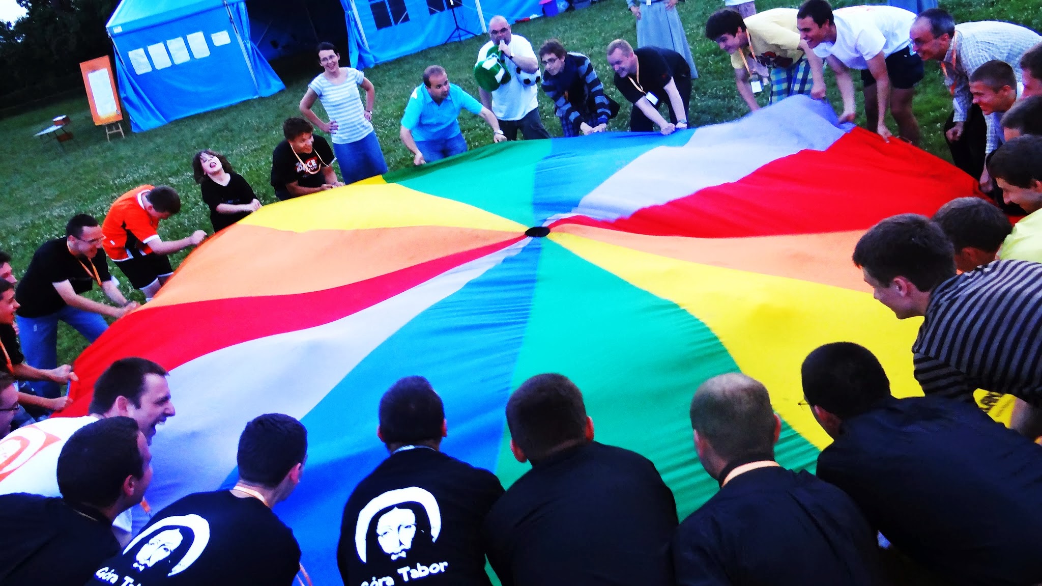 Spotkania to nieodłączna, bardzo energetyczna mieszanka wybuchowa na Górze Tabor. Wpadamy na siebie na porannej gimnastyce, podczas wspólnych posiłków w plenerze, na warsztatach, w czasie nocnego kina, dyskutując w małych i większych grupach, bawiąc się wspólnie w trakcie wieczoru zabaw i świętowania, prowadzonego przez wodzireja Norberta Śliwę. Mamy szansę porozmawiać z dziećmi, młodzieżą, studentami, kapłanami, siostrami zakonnymi, doświadczonymi małżonkami i rodzicami, oraz ze wspaniałymi gośćmi, którzy wcześniej głosili nam Słowo (lub fantastycznie pokazywali je swoim ciałem – jak pan Adam Kuliś w swoich pantomimach). Efektem jest eksplozja radości, nowych znajomości, odkrywanie talentów a także zdrowa sportowa rywalizacja w czasie taborowego turnieju siatkówki (warto wspomnieć, że tegorocznymi zwycięzcami byli wolontariusze, a drugie miejsce zajęli znakomici gospodarze - nowicjusze :-) )