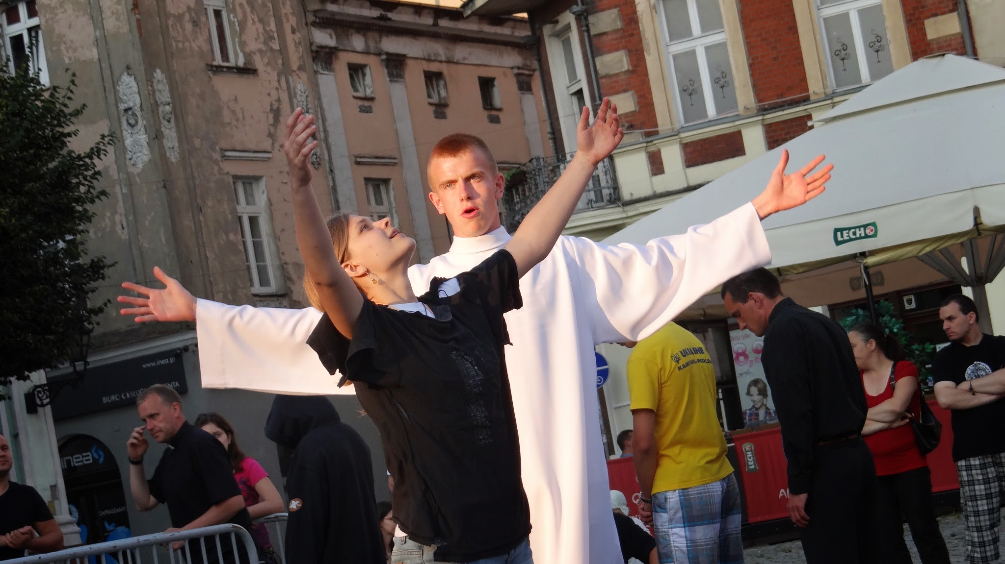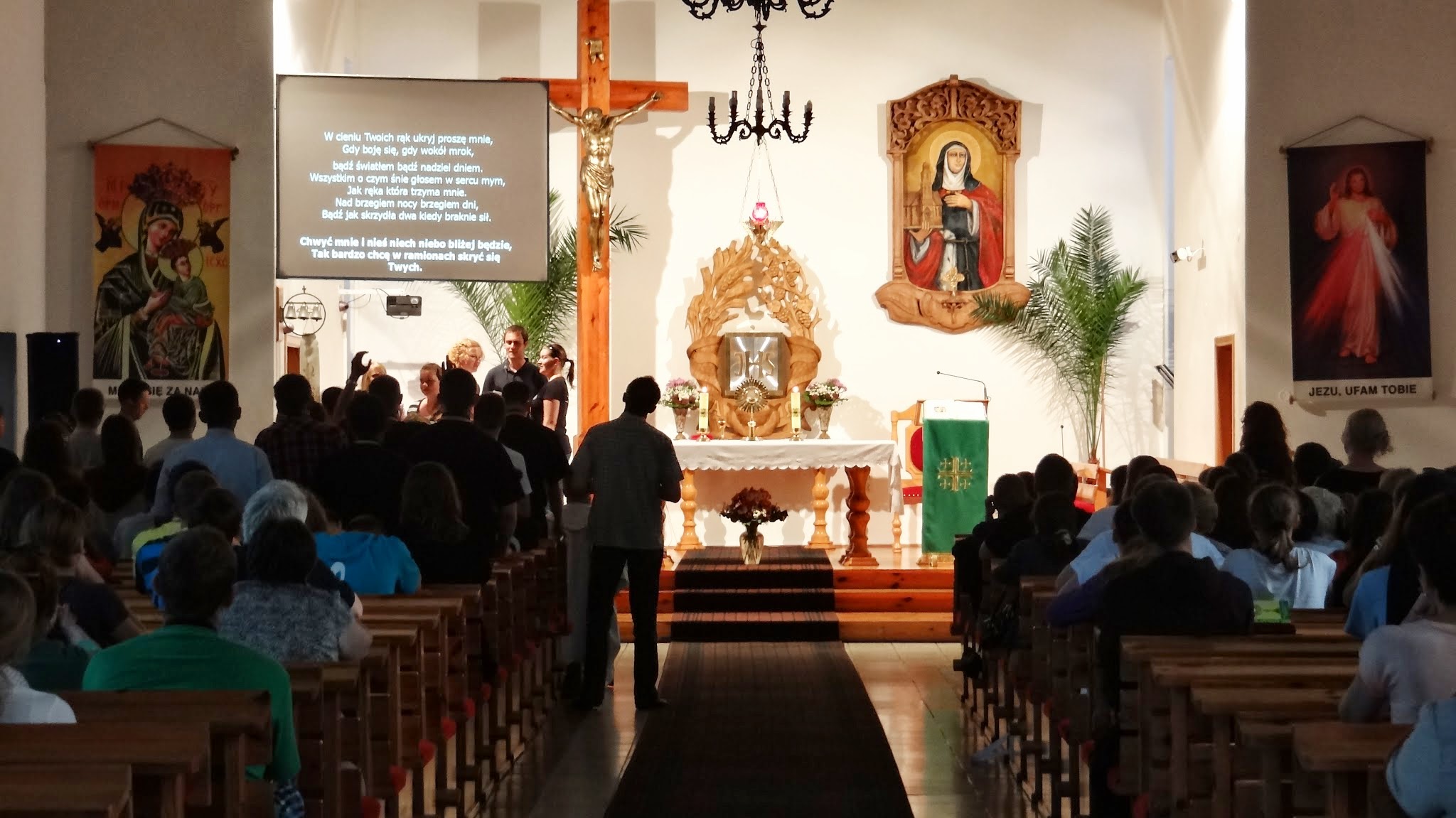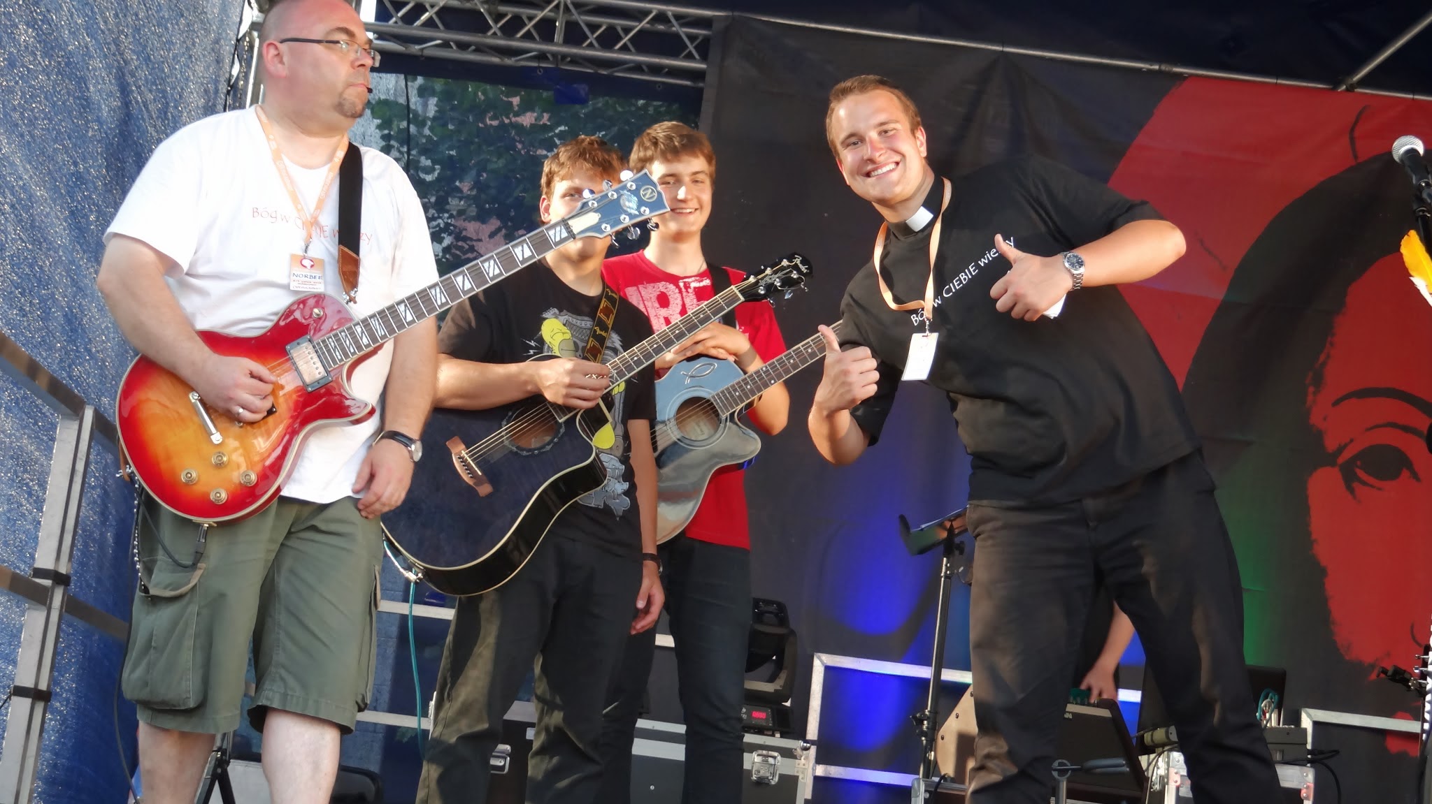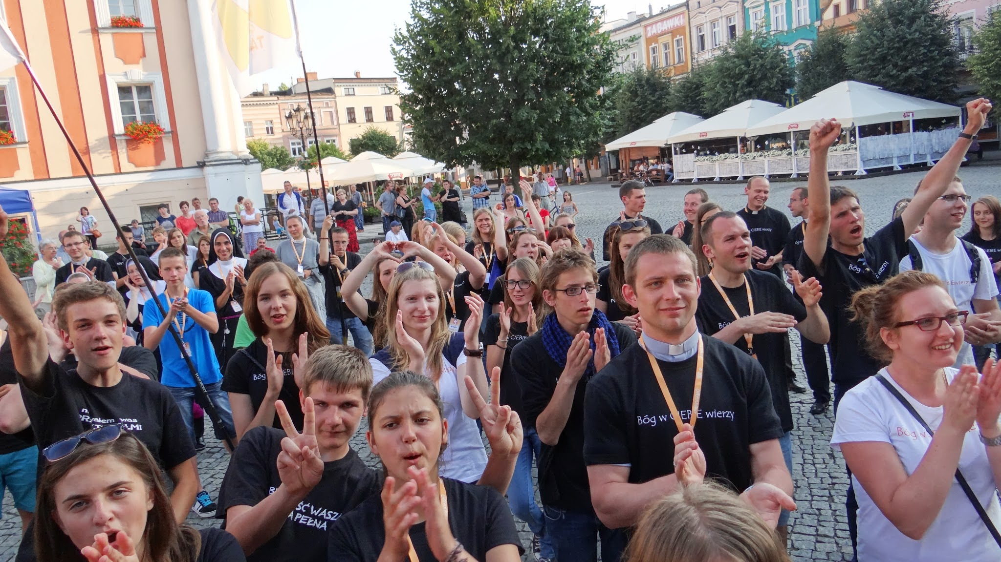 Wszystko to prowadzi do uwielbienia Pana Boga. Wieczorna modlitwa przy blasku świec, jutrznia, codzienna okazja do spotkania w sakramencie pokuty oraz Msze święte, w czasie których pomagał nam modlić się muzyką i śpiewem ogromnie utalentowany zespół, sprawiały, że chęć zbliżenia się do Niego, poznawania Go, dziękowania za życie i powierzania trudnych spraw rosła... Wieczór na rynku w Lesznie był okazją do podzielenia się swoją radością i wiarą z innymi. Razem z zaproszonymi do świętowania mieszkańcami tańczyliśmy, modliliśmy się śpiewając oraz słuchając koncertu zespołu Love Story a także opowiadaliśmy o spotkaniach z Bogiem – własnymi słowami i dzięki przedstawieniom, przygotowanym przez pana Adama. Ważnym doświadczeniem było dla wszystkich muzyczne uwielbienie, które odbyło się w kościele w Lipnie Nowym. Szansa spędzenia jakiegoś czasu przed Najświętszym Sakramentem, jest zawsze szansą na przemianę. Smutku w radość, strachu w spokój, zwątpień w ufność. Dlatego choć po zejściu z Góry Tabor wyglądamy wciąż tak samo, to jesteśmy przemienieni. JESTEŚMY PEWNI, że: „BÓG W NAS WIERZY!”