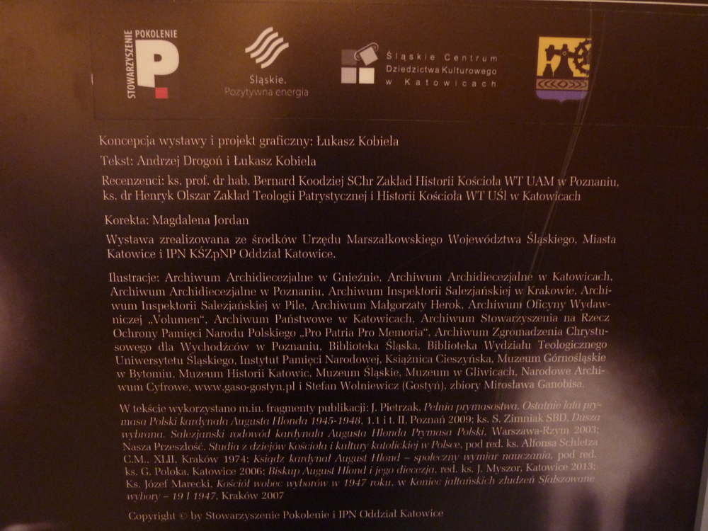 W Domu Głównym naszego zgromadzenia w Poznaniu od soboty 23 listopada można obejrzeć wystawę poświęconą osobie naszego założyciela, Sługi Bożego kard. Augusta Hlonda pod tytułem: „Kardynał August Hlond - Prymas czasu narodowych wyborów”. Ekspozycja została przygotowana przez katowicki oddział Instytutu Pamięci Narodowej i Śląskie Centrum Dziedzictwa Kulturowego w Katowicach (instytucja kultury Samorządu Woj. Śląskiego) z okazji przypadającej w tym roku 65. rocznicy śmierci kard. Hlonda oraz trwającego na Śląsku Roku Kardynała Augusta Hlonda. Patronat honorowy nad wystawą objął Prymas Polski abp Józef Kowalczyk. Koncepcja i projekt graficzny wystawy jest autorstwa Łukasza Kobieli. Jej scenariusz opracowali dr Andrzej Drogoń i Łukasz Kobiela. W przygotowaniu wystawy brał także udział nasz historyk i archiwista ks. prof. Bernard Kołodziej TChr. Na trzydziestu planszach wystawy zaprezentowano postać kardynała Augusta Hlonda, Prymasa Polski, jego życie oraz posługę w trudnych czasach budowy Restytuowanej II RP, podczas II wojny światowej i w nowej, komunistycznej rzeczywistości. Tłem dla postaci Kardynała i Jego życia jest zarys historii Górnego Śląska w okresie walk o polskość tych ziem, zarys historii ziem i losów Polaków w okresie II wojny światowej oraz w początkowym okresie kształtowania systemu totalitarnego na ziemiach polskich przez komunistów. Kolejne wydarzenia z życia Kardynała ilustrowane są fotografiami i innymi materiałami, m.in. fragmentami rękopisów, wycinkami z czasopism, dokumentami, pieczęciami, kartami notatnika Kardynała. Opis towarzyszący fotografiom jest wprowadzeniem do lekcji historii najnowszej. Bardzo obszerna ikonografia, obejmująca wiele po raz pierwszy prezentowanych unikalnych fotografii i dokumentów, pochodzi z archiwów archidiecezjalnych w: Gnieźnie, Katowicach, Poznaniu, Krakowie, Pile, Archiwum Małgorzaty Herok, a także Archiwum Oficyny Wydawniczej „Volumen", Archiwum Państwowego w Katowicach, Archiwum Stowarzyszenia na Rzecz Ochrony Pamięci Narodu Polskiego „Pro Patria Pro Memoria", Archiwum Towarzystwa Chrystusowego dla Polonii Zagranicznej w Poznaniu, Biblioteki Śląskiej, Biblioteki Wydziału Teologicznego Uniwersytetu Śląskiego, Instytutu Pamięci Narodowej, Książnicy Cieszyńskiej, Muzeum Górnośląskiego w Bytomiu, Muzeum Historii Katowic, Muzeum Śląskiego, Muzeum w Gliwicach, Narodowego Archiwum Cyfrowego, www.gaso-gostyn.pl i Stefan Wolniewicz (Gostyń), zbiorów Mirosława Ganobisa. „Wielkie słowa podziękowania wszystkim tym, którzy przyczynili się, że pokazaliśmy Augusta Hlonda przez fotografie do tej pory nieznane, które zostały wydobyte gdzieś z archiwów salezjańskich, archiwów Towarzystwa Chrystusowego, z różnych innych miejsc, do których pracownicy IPN dotarli. To stanowi dużą wartość” – podkreśla Piotr Koj, pełnomocnik marszałka województwa śląskiego do spraw Roku Kardynała Augusta Hlonda. Wystawa wcześniej była prezentowana m.in. w gmachu Sejmu Śląskiego i na Jasnej Górze.