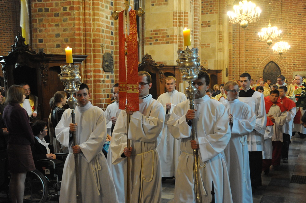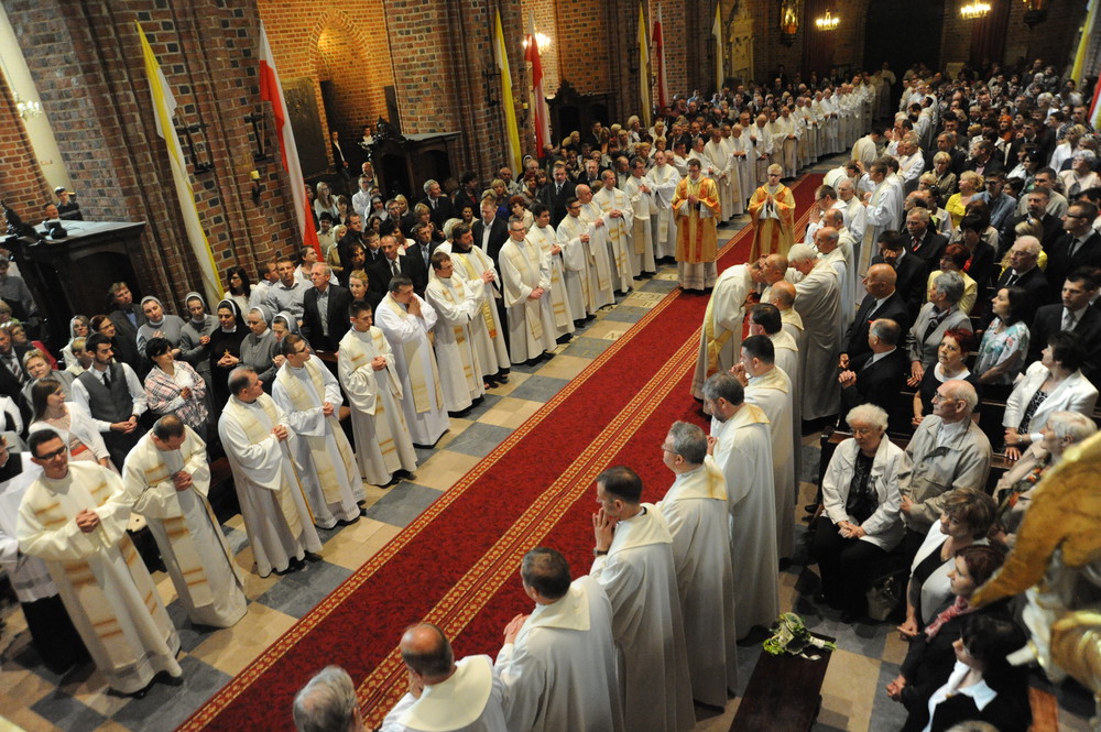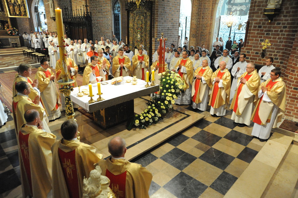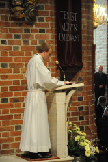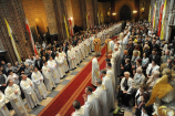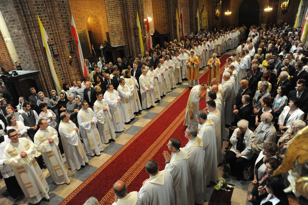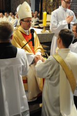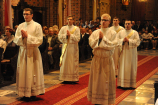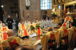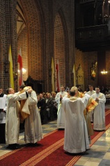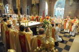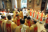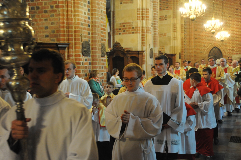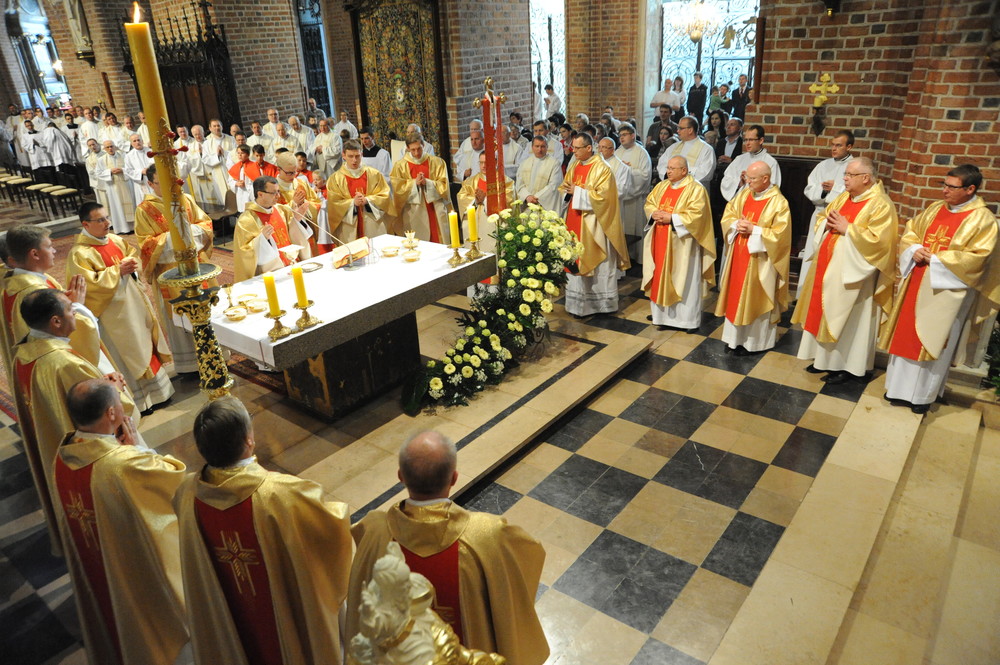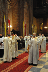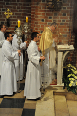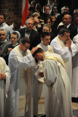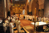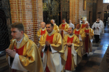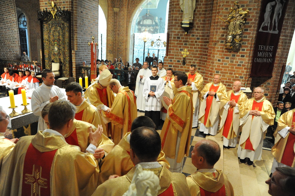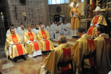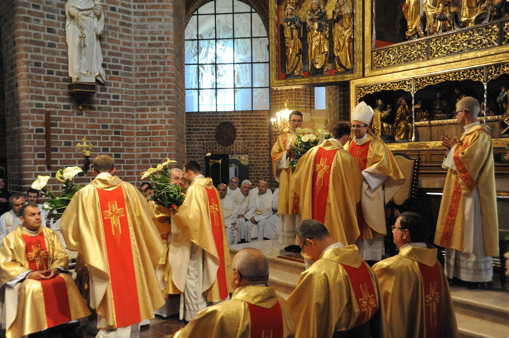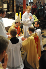 Dzień 20 maja 2014 r. to kolejna ważna data w historii naszego Zgromadzenia. Tego bowiem dnia biskup pomocniczy Archidiecezji Poznańskiej Damian Bryl udzielił święceń prezbiteratu diakonom: Marcinowi Dzilińskiemu (Warszawa), Pawłowi Guzikowi (Strzebielewo) i Piotrowi Janasowi (Potulice) oraz święceń diakonatu akolitom: Damianowi Jędrzejakowi z Władysławowa i Jarosławowi Koch z Wielkiego Mędromierza. Liturgia święceń, która rozpoczęła się o godz. 10.00 w poznańskiej Bazylice Archikatedralnej zgromadziła licznie przybyłych chrystusowców z kraju i zza granicy na czele z Przełożonym Generalnym ks. Ryszardem Głowackim TChr i całym Zarządem. Obecni byli wszyscy prowincjałowie, którzy uczestniczyli w święceniach także z racji swojego corocznego spotkania. W uroczystości uczestniczyli także najbliżsi nowo wyświęconych, znajomi, siostry zakonne, nasi dobrodzieje i wierni pochodzący z parafii święconych. Ks. biskup Damian Bryl, dla którego były to pierwsze święcenia po otrzymaniu w lipcu ubiegłego roku nominacji biskupiej, wygłosił także do zgromadzonych okolicznościową homilię. Po zakończonej Eucharystii dalszy ciąg uroczystości miał miejsce w Domu Głównym. Nowych prezbiterów i diakonów otaczamy naszą modlitewną pamięcią, o co prosimy też czytelników Kalendarium. Autorka zdjęć - Danuta Witkowska. Wszelkie prawa do zdjęć zamieszczonych na stronie są zastrzeżone.