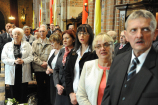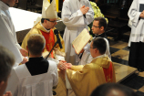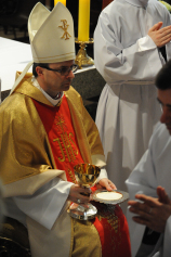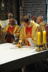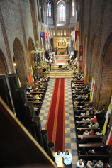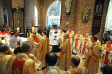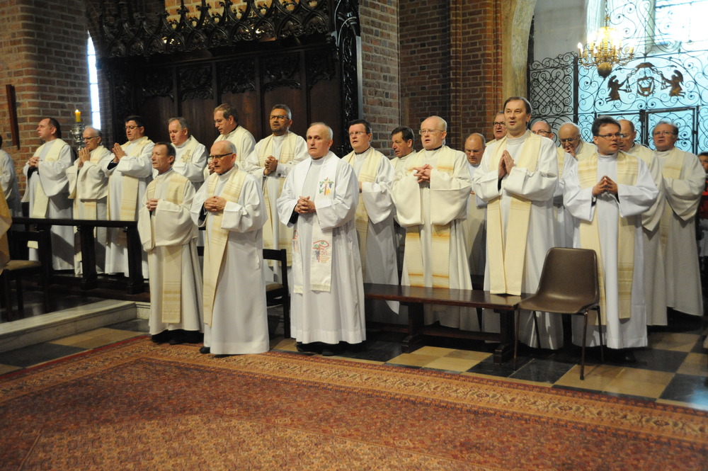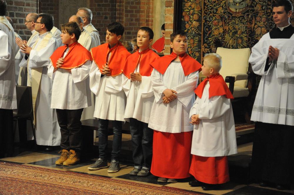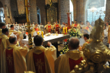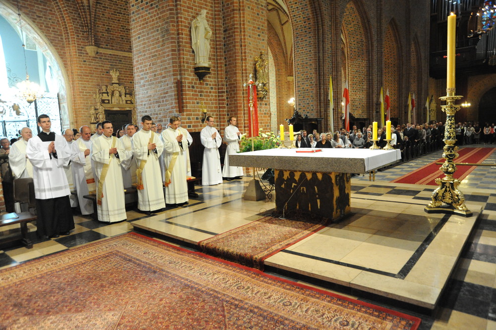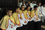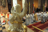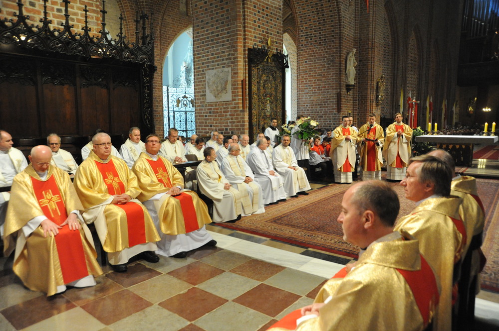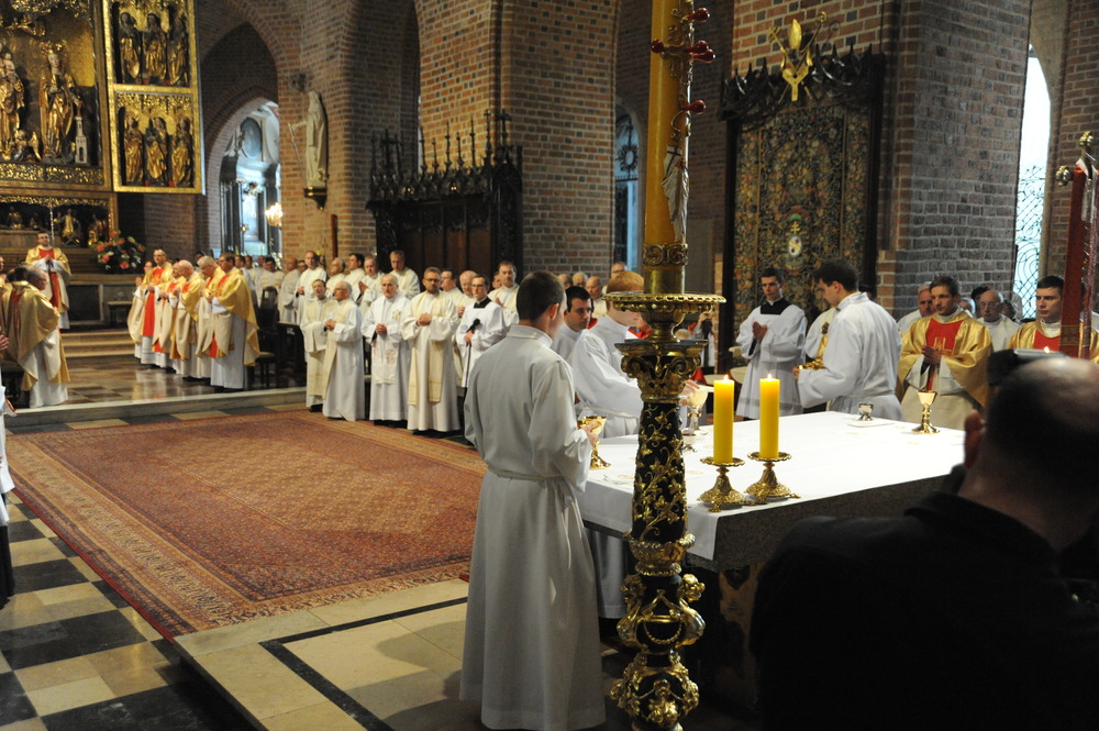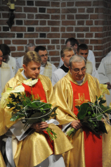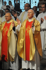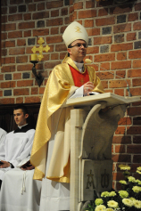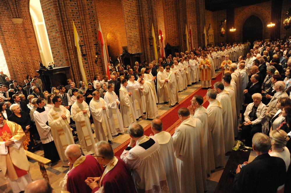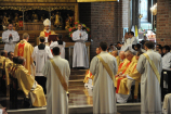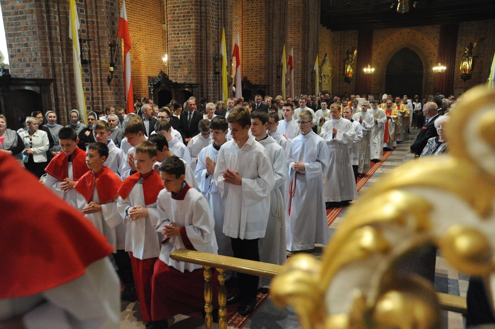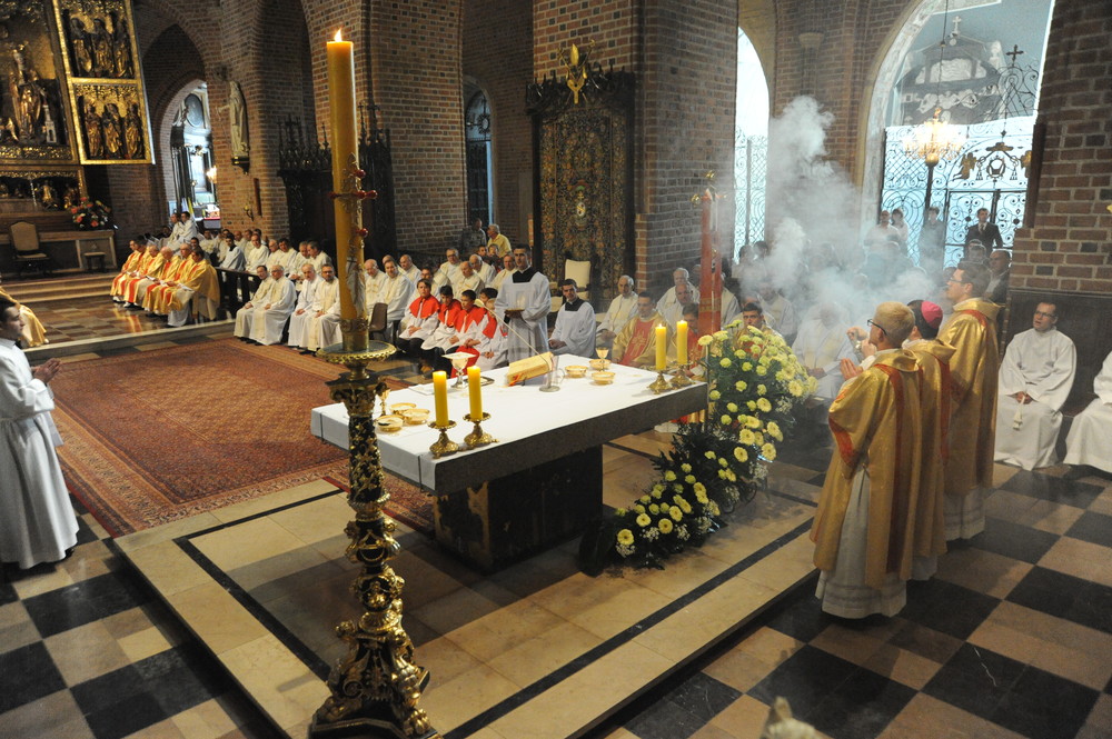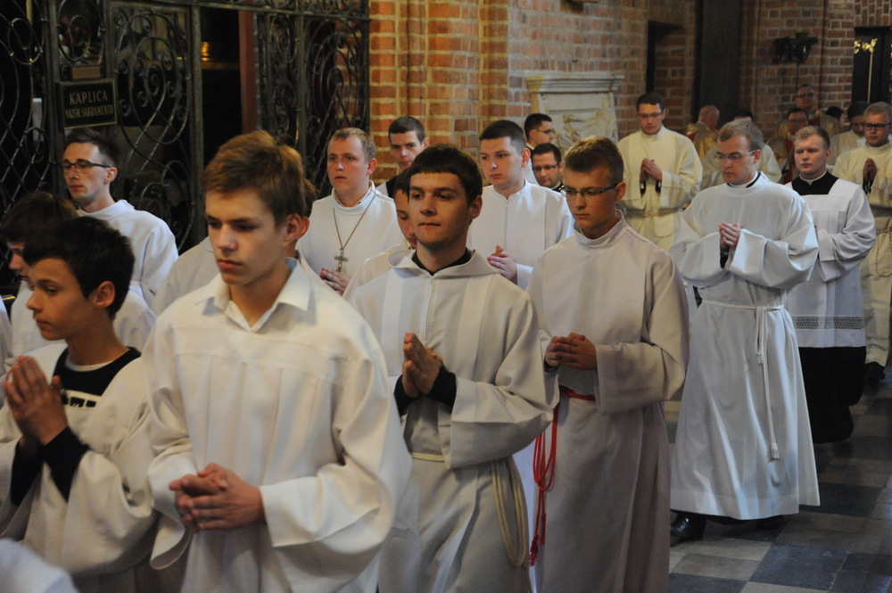 Dzień 20 maja 2014 r. to kolejna ważna data w historii naszego Zgromadzenia. Tego bowiem dnia biskup pomocniczy Archidiecezji Poznańskiej Damian Bryl udzielił święceń prezbiteratu diakonom: Marcinowi Dzilińskiemu (Warszawa), Pawłowi Guzikowi (Strzebielewo) i Piotrowi Janasowi (Potulice) oraz święceń diakonatu akolitom: Damianowi Jędrzejakowi z Władysławowa i Jarosławowi Koch z Wielkiego Mędromierza. Liturgia święceń, która rozpoczęła się o godz. 10.00 w poznańskiej Bazylice Archikatedralnej zgromadziła licznie przybyłych chrystusowców z kraju i zza granicy na czele z Przełożonym Generalnym ks. Ryszardem Głowackim TChr i całym Zarządem. Obecni byli wszyscy prowincjałowie, którzy uczestniczyli w święceniach także z racji swojego corocznego spotkania. W uroczystości uczestniczyli także najbliżsi nowo wyświęconych, znajomi, siostry zakonne, nasi dobrodzieje i wierni pochodzący z parafii święconych. Ks. biskup Damian Bryl, dla którego były to pierwsze święcenia po otrzymaniu w lipcu ubiegłego roku nominacji biskupiej, wygłosił także do zgromadzonych okolicznościową homilię. Po zakończonej Eucharystii dalszy ciąg uroczystości miał miejsce w Domu Głównym. Nowych prezbiterów i diakonów otaczamy naszą modlitewną pamięcią, o co prosimy też czytelników Kalendarium. Autorka zdjęć - Danuta Witkowska. Wszelkie prawa do zdjęć zamieszczonych na stronie są zastrzeżone.