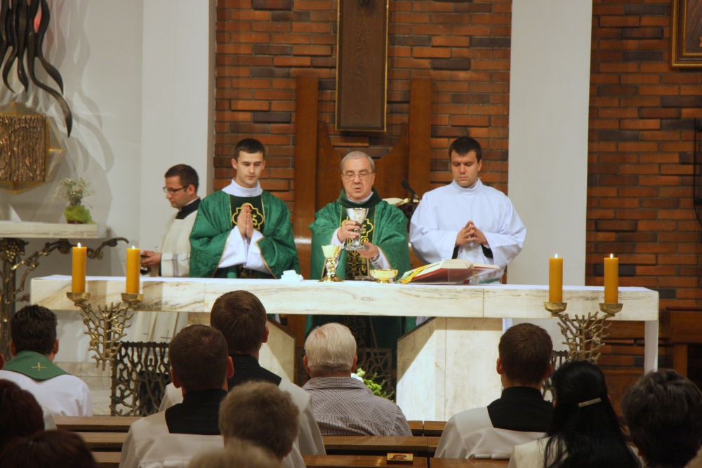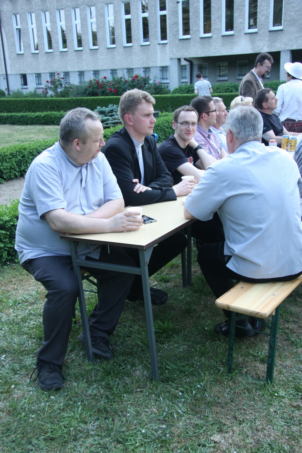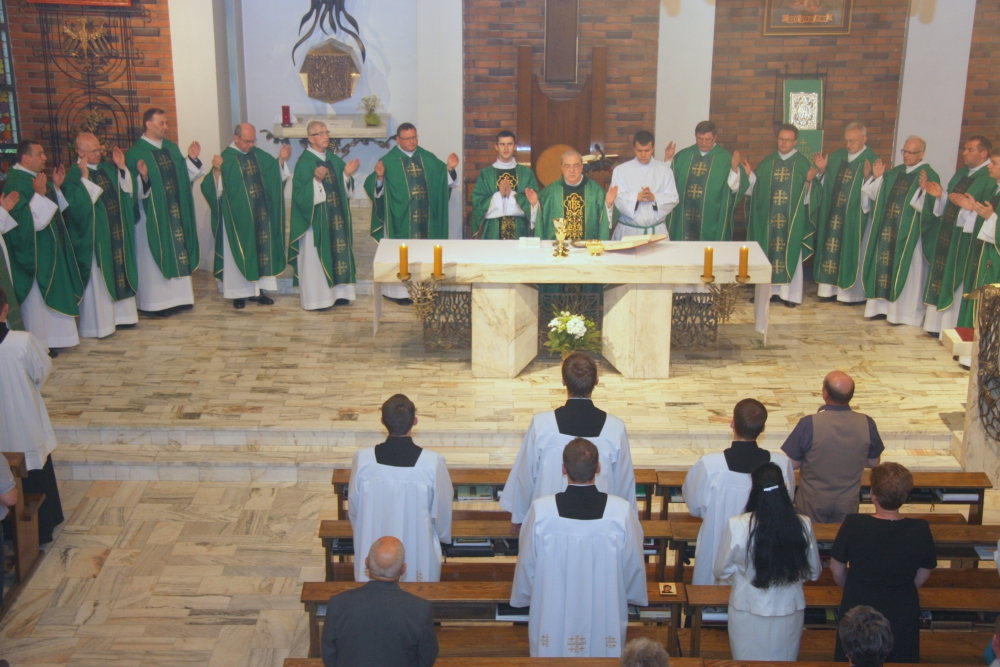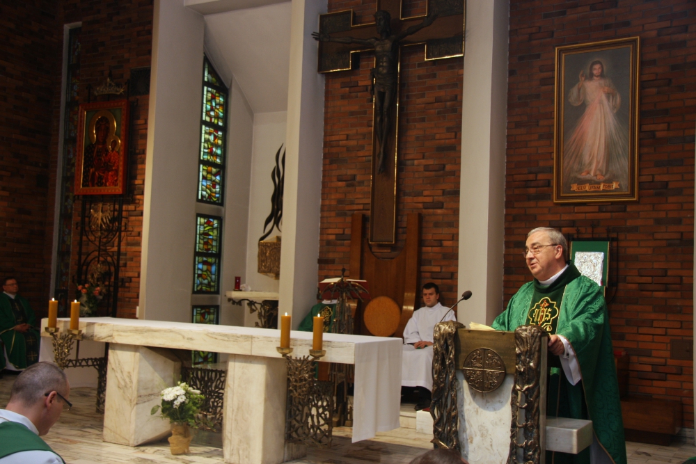 W ramach obchodów Roku Życia Konsekrowanego zaprosiliśmy do naszego Domu Głównego w Poznaniu Rodziców księży, braci i kleryków naszego Zgromadzenia. Tegoroczne spotkanie rodziców rozpoczęło się 5 czerwca wspólnym obiadem w zakonnym refektarzu. Mamy radość gościć 88 naszych najbliższych krewnych mieszkających na co dzień w Polsce, jak również za granicą. W Godzinie Miłosierdzia wszyscy uczestnicy odmówili Koronkę do Bożego Miłosierdzia przed obrazem Jezusa Miłosiernego w kaplicy seminaryjnej. Następnie udali się do auli na projekcję filmu o Słudze Bożym Kardynale Auguście Hlondzie. Uroczystej Eucharystii o godzinie 17:30 przewodniczył Wikariusz Generalny ks. Bogusław Burgat TChr. W homilii ksiądz Wikariusz przybliżył kult Serca Jezusowego, który jest bardzo ważnym elementem duchowości każdego chrystusowca oraz wyraził głębokie uznanie dla rodziców wszystkich chrystusowców. O godzinie 20:00 rozpoczęła się adoracja przygotowana przez scholę naszego seminarium pod kierownictwem ks. Roberta Nalepki. Wieczorna modlitwa zakończyła się błogosławieństwem Najświętszym Sakramentem i Apelem łączącym zebranych w Poznańskiej kaplicy z Jasną Górą. Sobotni dzień rozpoczęliśmy od porannej Mszy Świętej. Podczas homilii Rektor Wyższego Seminarium Duchownego ks. Andrzej Łysy zwrócił uwagę na wyjątkową moc modlitwy i podkreślił jej rolę we wspólnocie rodziców księży, braci i kleryków chrystusowców. Ksiądz Rektor zaznaczył również wyjątkową rolę rodziny w wychowaniu kandydatów do kapłaństwa i życia zakonnego. Sobotnie przedpołudnie było przeznaczone na zwiedzanie Ostrowa Tumskiego. Nasi rodzice poznali historię katedralnej wyspy oraz znajdujących się na niej obiektów. Zwiedzili poznańską katedrę, schodząc do jej podziemi oraz nowe muzeum „Brama Poznania”. Po południu można było obejrzeć film poświęcony osobie Ojca Ignacego Posadzego TChr, Współzałożyciela Zgromadzenia. O 16.30 wszyscy zebrali się na czerwcowym nabożeństwie przy figurze Najświętszego Serca Jezusowego w naszym parku, a po nim rozpoczęło się wspólne grillowanie. Sobotni słoneczny dzień zakończył spektakularny koncert pod nazwą „SAMARA-SONG”. Burzowe chmury, które zebrały się nad Poznaniem nie zdołały przysłonić radosnej atmosfery ostatniego dnia tegorocznego spotkania rodziców księży, braci i kleryków chrystusowców. Niedziela rozpoczęła się w kaplicy seminaryjnej wspólną kontemplacją Ewangelii, po której wszyscy zebrami odśpiewali Jutrznię. Około godziny 9:00 rodzice i krewni chrystusowców spotkali się w auli seminaryjnej z Przełożonym Generalnym Towarzystwa Chrystusowego dla Polonii Zagranicznej ks. Ryszardem Głowackim TChr. Centralnym punktem dnia była uroczysta Eucharystia, której przewodniczył Przełożony Generalny. W homilii ks. Generał podkreślił Dobrą Nowinę głoszoną przez św. Pawła o nadziei zbawienia dla tych, którzy mimo przeciwności trwają w wierze. Zwrócił również uwagę na słowa Apostoła: „Uwierzyłem, dlatego przemówiłem”, które kaznodzieja odniósł do silnej wiary rodziców oraz ich świadectwa wobec swoich synów, którzy wychowując się w domu rodzinnym mieli odpowiednie warunki do wzrastania w powołaniu. Podkreślił też, jak istotna jest akceptacja, ze strony rodziców, tak wyjątkowego powołania jakim jest życie zakonne i kapłaństwo w Towarzystwie Chrystusowym. Na zakończenie homilii ks. Generał, nawiązując do Ewangelii, przypomniał, że wszyscy jesteśmy braćmi Jezusa oraz podkreślił fakt, że wszystkich rodziców chrystusowców łączy wspólna miłość i wiara w Chrystusa. Przełożony Generalny ks. Ryszard Głowacki TChr sprawował Mszę świętą w intencji wszystkich żyjących i zmarłych rodziców oraz rodziny chrystusowców, Ekonom Generalny ks. Zbigniew Kutnik TChr w intencji zmarłych przyjaciół i dobrodziejów naszego Towarzystwa, Rektor Seminarium ks. Andrzej Łysy TChr w intencji rodziców wszystkich chrystusowców, natomiast Referent Powołań ks. Marcin Stefanik TChr modlił się o powołania do Towarzystwa. Nie zabrakło również pamiątkowego zdjęcia. Na zakończenie obiadu Przełożony Generalny zaprosił wszystkich rodziców chrystusowców na przyszłoroczne spotkanie. Za radość spotkania, wszystkim przybyłym z serca dziękujemy - Bóg zapłać! dk. Mateusz Socha TChr Zdjęcia do pobrania (plik zip do rozpakowania - waga ok. 340 MB)