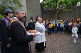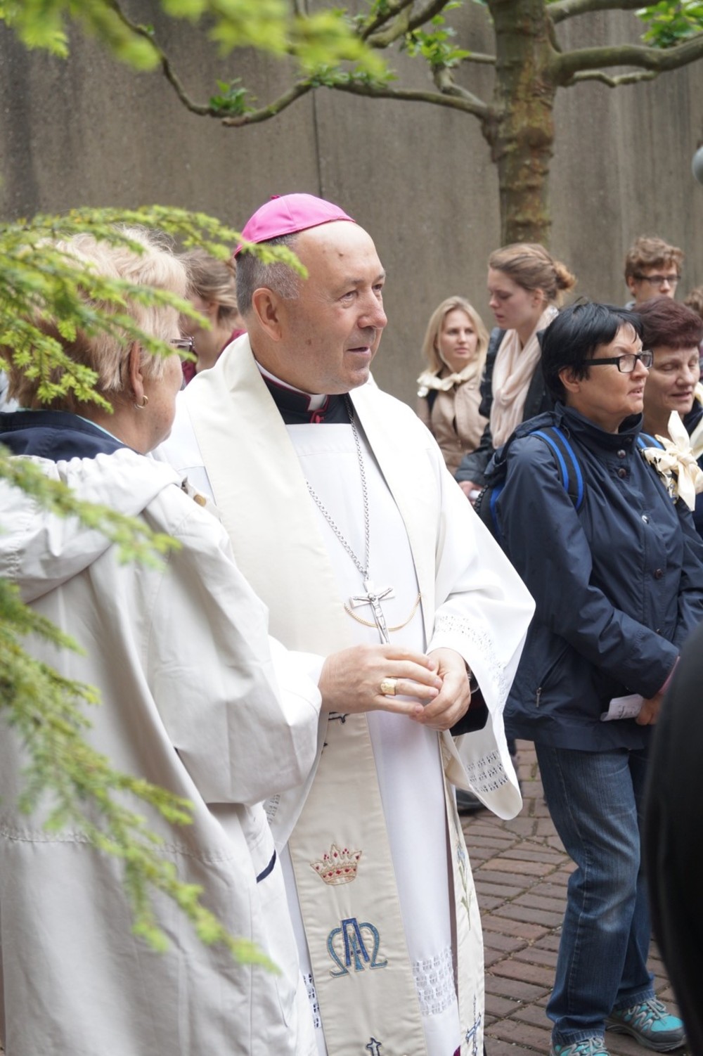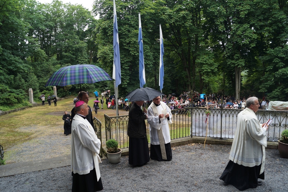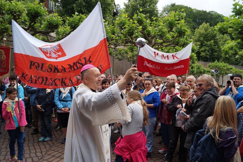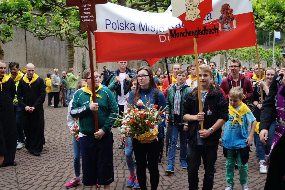 Uroczystości polonijne w Neviges: Maryja najdoskonajszym wzorem bezgranicznej ufności i zawierzenia. W dniach 20-21 czerwca w niemieckim sanktuarium maryjnym w Neviges odbyły się polonijne uroczystości religijne. Już tradycyjnie w trzecią sobotę i niedzielę czerwca księża z Towarzystwa Chrystusowego dla Polonii Zagranicznej (chrystusowcy) zapraszają Rodaków i czcicieli Matki Najświętszej do "westfalskiej Częstochowy" w Neviges do udziału w tej uroczystości. Księża chrystusowcy wkładają wiele troski, by objąć opieką duszpasterską Polaków mieszkających poza granicami swojego kraju. Podczas tegorocznych uroczystości, w trwającym Roku Życia Konsekrowanego w sposób szczególny modlono się za wszystkie osoby konsekrowane, które poświęciły swoje życie Bogu i Kościołowi. Zanoszono również modlitwy do Boga przez wstawiennictwo Maryi Królowej Pokoju o nowe i liczne powołania kapłańskie, zakonne i misyjne do służby w Chrystusowym Kościele. Szczególnym pielgrzymem odwiedzającym Neviges w 1978 roku okazał się ówczesny kardynał Karol Wojtyła, udający się do Rzymu przed mającym się odbyć konklawe. Zostawił Polakom mieszkającym w Niemczech wyjątkową pamiątkę - obraz Matki Bożej Częstochowskiej - jako znak swojej obecności i modlitwy za Polonię. A jako Papież uczył później zawierzenia Bogu przez Maryję: TOTUS TUUS czyli Cały Twój. Postawmy Boga na pierwszym miejscu Tegorocznym uroczystościom w Neviges przewodniczył biskup grodzieński Aleksander Kaszkiewicz z Białorusi, który przybył, aby umocnić w wierze i dodać otuchy w znoszonym trudzie codziennych obowiązków życia emigracyjnego. W sobotę wieczorem 20 czerwca biskup Aleksander Kaszkiewicz przewodniczył uroczystej Mszy św. z udziałem licznie przybyłych pielgrzymów, którzy dotarli w sześciu pieszych pielgrzymkach. Piesze pielgrzymki z polskich misji katolickich, w których posługują księża chrystusowcy przybyły z Düsseldorfu, Essen, Bochum, Wuppertalu, Remscheid, Duisburga. Zwracając się do obecnych pielgrzymów biskup Aleksander Kaszkiewicz zachęcał, by każdy zechciał sobie odpowiedzieć na pytanie: "Kto jest najważniejszy w moim życiu?". "Tylko wtedy, gdy człowiek uzna, że Bóg jest Panem, że to On jest pierwszy i najważniejszy - tylko wtedy również podejście do rzeczy materialnych i do różnych trosk doczesnych będzie właściwe"- dodał hierarcha. Zaufajmy Panu 21 czerwca br. w tym samym miejscu biskup grodzieński przewodniczył również Mszy św. dla pielgrzymów, którzy przybyli różnymi środkami lokomocji. We Mszy św. również uczestniczył Przełożony Generalny Towarzystwa Chrystusowego dla Polonii Zagranicznej ks. Ryszard Głowacki TChr. "W tym świętym miejscu, uświęconym modlitwami tysięcy pielgrzymów, prośmy Maryję, Matkę Boga i naszą, która jest najdoskonalszym wzorem bezgranicznej ufności i zawierzenia o łaskę prostej, ufnej, dziecięcej wiary"- mówił w kazaniu biskup grodzieński. Dalej hierarcha zachęcał do całkowitego zaufania Panu Bogu, od którego wszystko pochodzi. "Obyśmy nigdy nie zwątpili w Jezusa. Obyśmy nigdy nie pomyśleli, że wśród życiowych burz jesteśmy zdani tylko na siebie. Obyśmy przychodząc do Jezusa i zmagając się z tym, co przerasta, mieli otwarte serce i z Jezusem - tylko z Nim - szukali najwłaściwszych i najlepszych rozwiązań" - mówił biskup Kaszkiewicz. Biskup Aleksander Kaszkiewicz również podziękował w imieniu Episkopatu Białorusi za trzy lata posługi w Kościele Katolickim na Białorusi księdzu Edmundowi Druzowi TChr, obecnemu prowincjałowi niemiecko-holendersko-włosko-węgierskiej prowincji. Ksiądz Edmund Druz TChr w latach 2011 (październik) - 2014 (sierpień) pełnił funkcję dyrektora Centrum Pastoralnego przy Episkopacie Białorusi w Mińsku. Trwajmy w wierze Uroczystości w Neviges zakończyły się procesją różańcową i śpiewem pieśni maryjnych przy ołtarzu polowym na Górze Maryi. Ksiądz Ryszard Głowacki TChr, Przełożony Generalny chrystusowców podziękował wszystkim za trwanie w wierze i zachęcił do pielęgnowania tradycji katolickich w swoich domach i wszędzie tam, gdzie los emigracji pokieruje. W uroczystościach udział wzięli również klerycy Wyższego Seminarium Duchownego Towarzystwa z Poznania, którzy dołączyli do pieszych pielgrzymów, aby razem wspólnie umacniać się w wierze i dawać świadectwo, że warto iść za Jezusem Chrystusem. Warto zaznaczyć, że wielu pielgrzymów w tych dniach skorzystało z sakramentu pokuty i pojednania. Ks. Jerzy Martinowicz, dyrektor Biura Informacji przy Sekretariacie Konferencji Katolickich Biskupów Białorusi