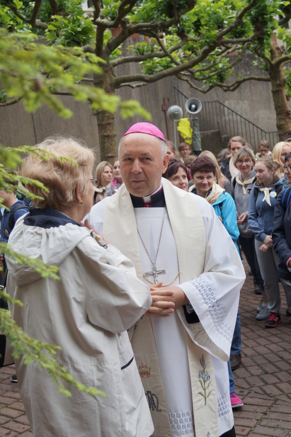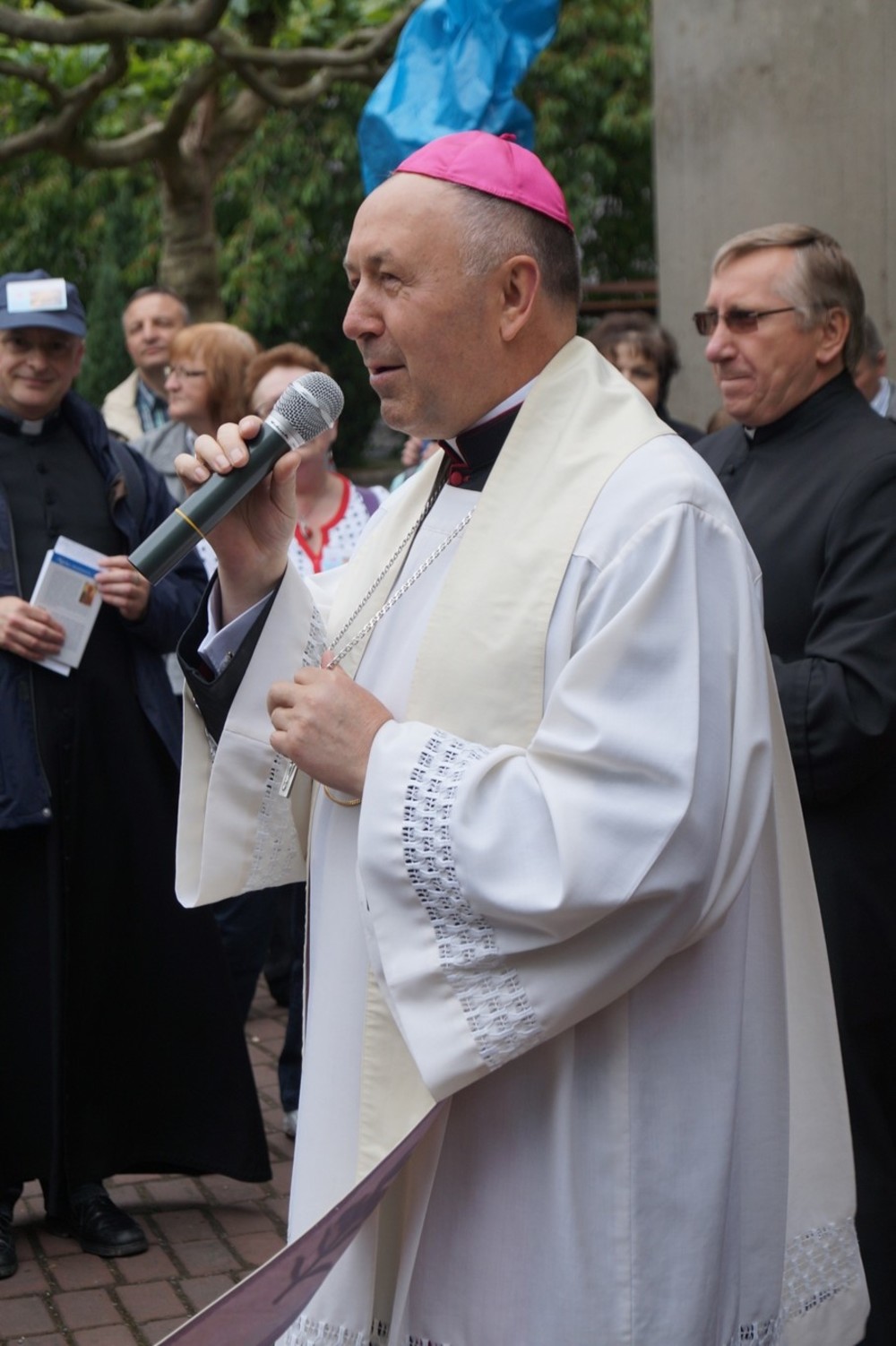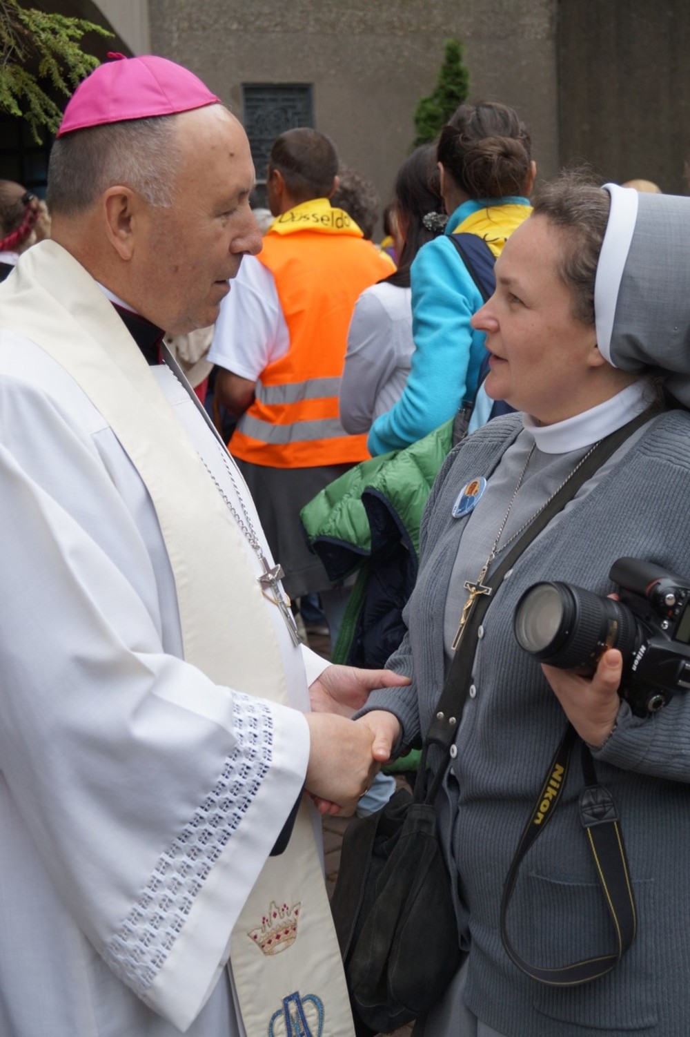 Uroczystości polonijne w Neviges: Maryja najdoskonajszym wzorem bezgranicznej ufności i zawierzenia. W dniach 20-21 czerwca w niemieckim sanktuarium maryjnym w Neviges odbyły się polonijne uroczystości religijne. Już tradycyjnie w trzecią sobotę i niedzielę czerwca księża z Towarzystwa Chrystusowego dla Polonii Zagranicznej (chrystusowcy) zapraszają Rodaków i czcicieli Matki Najświętszej do "westfalskiej Częstochowy" w Neviges do udziału w tej uroczystości. Księża chrystusowcy wkładają wiele troski, by objąć opieką duszpasterską Polaków mieszkających poza granicami swojego kraju. Podczas tegorocznych uroczystości, w trwającym Roku Życia Konsekrowanego w sposób szczególny modlono się za wszystkie osoby konsekrowane, które poświęciły swoje życie Bogu i Kościołowi. Zanoszono również modlitwy do Boga przez wstawiennictwo Maryi Królowej Pokoju o nowe i liczne powołania kapłańskie, zakonne i misyjne do służby w Chrystusowym Kościele. Szczególnym pielgrzymem odwiedzającym Neviges w 1978 roku okazał się ówczesny kardynał Karol Wojtyła, udający się do Rzymu przed mającym się odbyć konklawe. Zostawił Polakom mieszkającym w Niemczech wyjątkową pamiątkę - obraz Matki Bożej Częstochowskiej - jako znak swojej obecności i modlitwy za Polonię. A jako Papież uczył później zawierzenia Bogu przez Maryję: TOTUS TUUS czyli Cały Twój. Postawmy Boga na pierwszym miejscu Tegorocznym uroczystościom w Neviges przewodniczył biskup grodzieński Aleksander Kaszkiewicz z Białorusi, który przybył, aby umocnić w wierze i dodać otuchy w znoszonym trudzie codziennych obowiązków życia emigracyjnego. W sobotę wieczorem 20 czerwca biskup Aleksander Kaszkiewicz przewodniczył uroczystej Mszy św. z udziałem licznie przybyłych pielgrzymów, którzy dotarli w sześciu pieszych pielgrzymkach. Piesze pielgrzymki z polskich misji katolickich, w których posługują księża chrystusowcy przybyły z Düsseldorfu, Essen, Bochum, Wuppertalu, Remscheid, Duisburga. Zwracając się do obecnych pielgrzymów biskup Aleksander Kaszkiewicz zachęcał, by każdy zechciał sobie odpowiedzieć na pytanie: "Kto jest najważniejszy w moim życiu?". "Tylko wtedy, gdy człowiek uzna, że Bóg jest Panem, że to On jest pierwszy i najważniejszy - tylko wtedy również podejście do rzeczy materialnych i do różnych trosk doczesnych będzie właściwe"- dodał hierarcha. Zaufajmy Panu 21 czerwca br. w tym samym miejscu biskup grodzieński przewodniczył również Mszy św. dla pielgrzymów, którzy przybyli różnymi środkami lokomocji. We Mszy św. również uczestniczył Przełożony Generalny Towarzystwa Chrystusowego dla Polonii Zagranicznej ks. Ryszard Głowacki TChr. "W tym świętym miejscu, uświęconym modlitwami tysięcy pielgrzymów, prośmy Maryję, Matkę Boga i naszą, która jest najdoskonalszym wzorem bezgranicznej ufności i zawierzenia o łaskę prostej, ufnej, dziecięcej wiary"- mówił w kazaniu biskup grodzieński. Dalej hierarcha zachęcał do całkowitego zaufania Panu Bogu, od którego wszystko pochodzi. "Obyśmy nigdy nie zwątpili w Jezusa. Obyśmy nigdy nie pomyśleli, że wśród życiowych burz jesteśmy zdani tylko na siebie. Obyśmy przychodząc do Jezusa i zmagając się z tym, co przerasta, mieli otwarte serce i z Jezusem - tylko z Nim - szukali najwłaściwszych i najlepszych rozwiązań" - mówił biskup Kaszkiewicz. Biskup Aleksander Kaszkiewicz również podziękował w imieniu Episkopatu Białorusi za trzy lata posługi w Kościele Katolickim na Białorusi księdzu Edmundowi Druzowi TChr, obecnemu prowincjałowi niemiecko-holendersko-włosko-węgierskiej prowincji. Ksiądz Edmund Druz TChr w latach 2011 (październik) - 2014 (sierpień) pełnił funkcję dyrektora Centrum Pastoralnego przy Episkopacie Białorusi w Mińsku. Trwajmy w wierze Uroczystości w Neviges zakończyły się procesją różańcową i śpiewem pieśni maryjnych przy ołtarzu polowym na Górze Maryi. Ksiądz Ryszard Głowacki TChr, Przełożony Generalny chrystusowców podziękował wszystkim za trwanie w wierze i zachęcił do pielęgnowania tradycji katolickich w swoich domach i wszędzie tam, gdzie los emigracji pokieruje. W uroczystościach udział wzięli również klerycy Wyższego Seminarium Duchownego Towarzystwa z Poznania, którzy dołączyli do pieszych pielgrzymów, aby razem wspólnie umacniać się w wierze i dawać świadectwo, że warto iść za Jezusem Chrystusem. Warto zaznaczyć, że wielu pielgrzymów w tych dniach skorzystało z sakramentu pokuty i pojednania. Ks. Jerzy Martinowicz, dyrektor Biura Informacji przy Sekretariacie Konferencji Katolickich Biskupów Białorusi