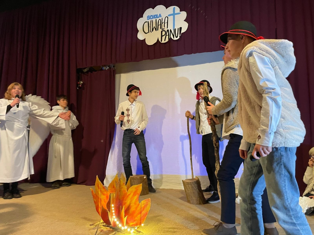 Prowadząca scholę Dorota Szlachta dała dzieciom wolną rękę co do scenariusza, strojów, rekwizytów, doboru kolęd i tekstów, dobrze wiedząc, że sobie z tym poradzą. Dało im to przestrzeń do stworzenia naprawdę zgranego zespołu, w którym wspierali się nawzajem. Rodzice pięknie się zaangażowali przy budowie szopki, zorganizowaniu pokazu slajdów, nagłośnieniu i wielu innych elementach. Wymagające role i solówki podniosły poziom spektaklu.