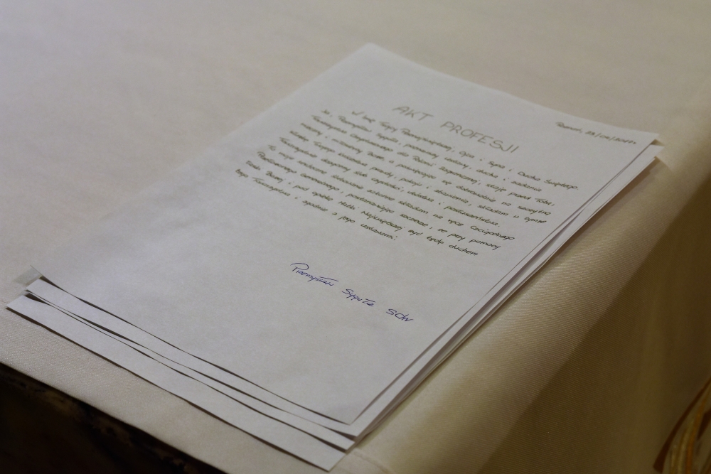 Przełożony Generalny w homilii podziękował rodzicom za trud wychowania, ale przede wszystkim za to, że zatroszczyli się dla swoich synów o chrzest i wiarę. Przytoczył słowa adhortacji apostolskiej Jana Pawła II Redemptionis donum z 1984 roku, wskazując na to, że profesja zakonna (…)  sięga głęboko w konsekrację chrztu i pełniej ją wyraża (7; por. Perfectae caritatis, 5).
