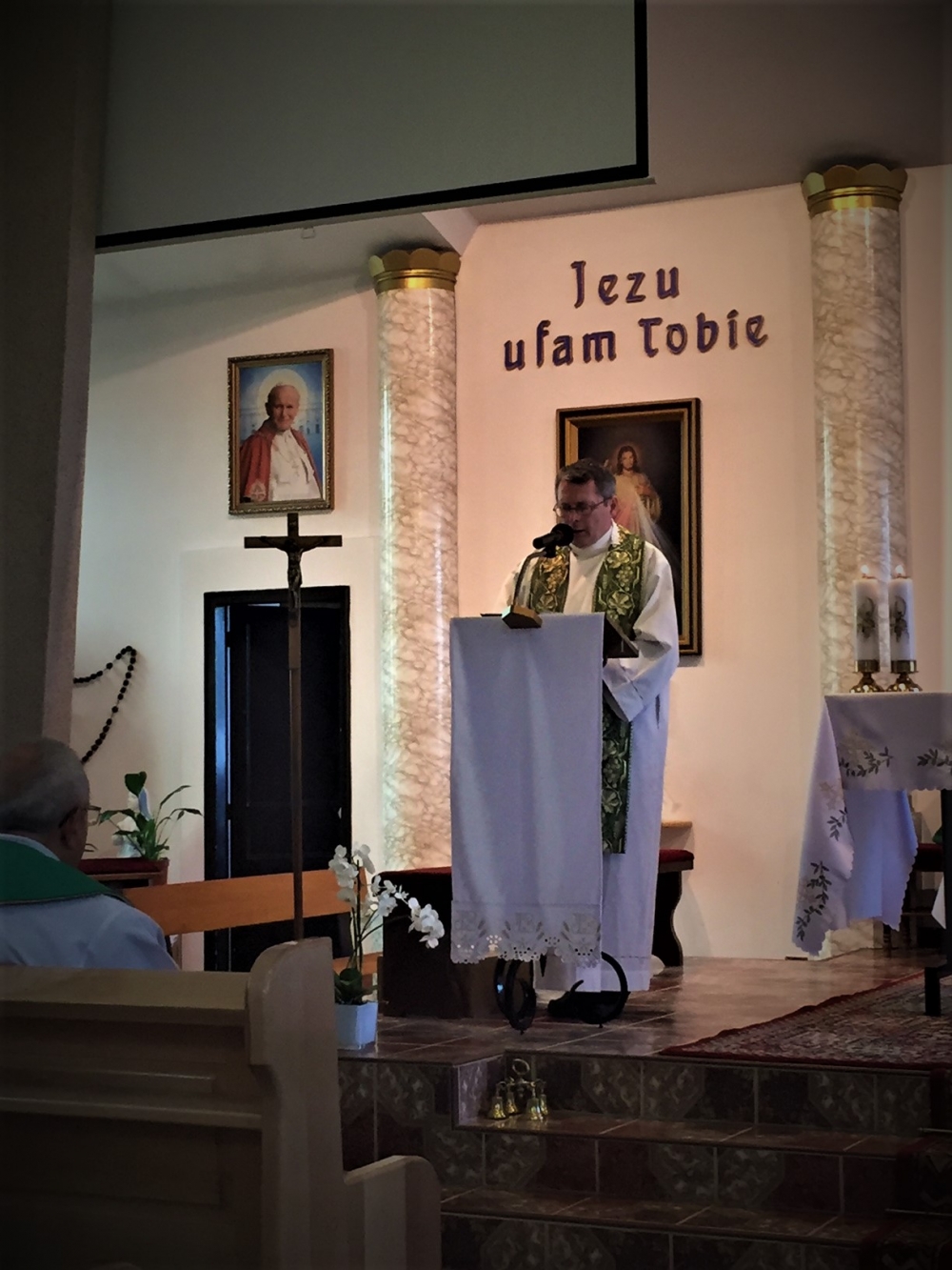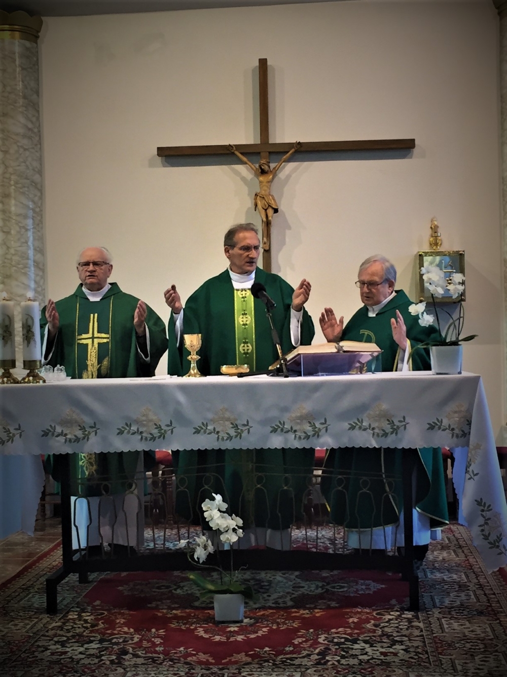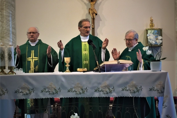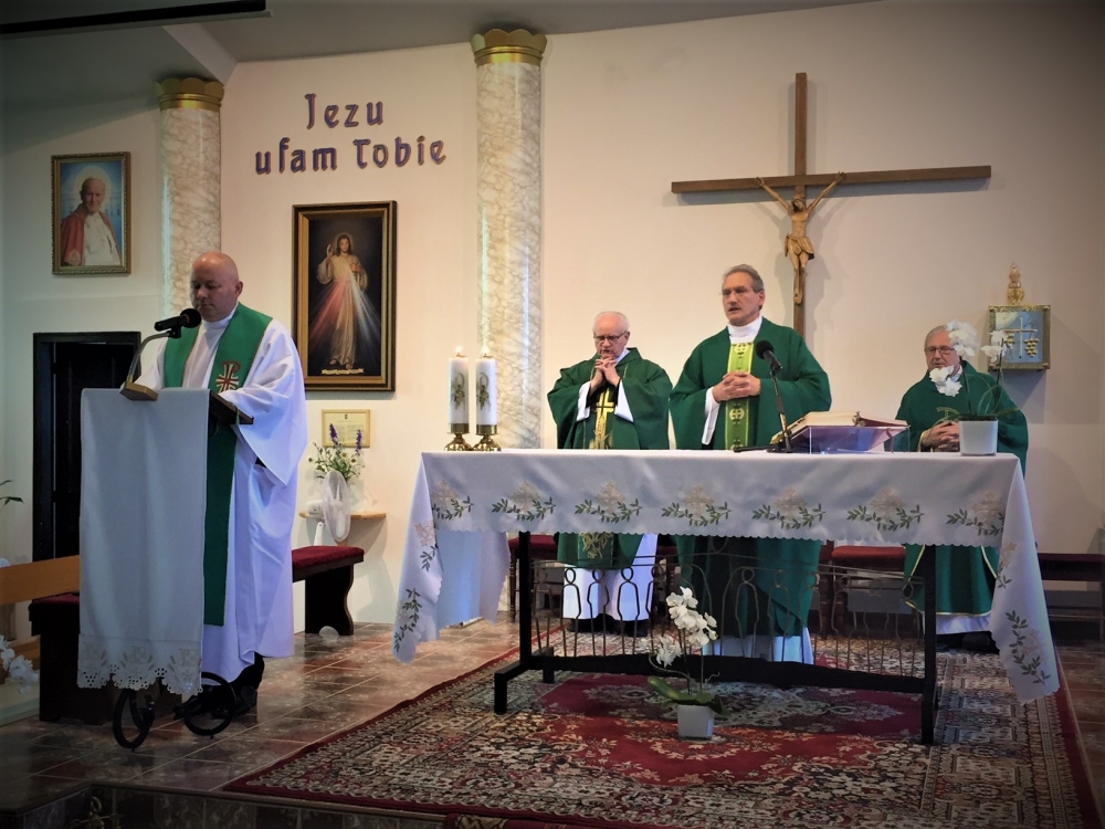 Następnie, w czasie wspólnej adoracji Najświętszego Sakramentu, była okazja do usłużenia sobie sakramentem pojednania i spowiedzi obecnych kapłanów. Po adoracji i spowiedzi, koncelebrowanej Mszy Świętej przewodniczył gospodarz a jednocześnie solenizant następnego dnia, ks. Antoni, przy ołtarzu towarzyszyli mu najstarsi czerwcowi solenizanci, ks. Jan Kałuża SChr i ks. Władysław Dobroć SChr, a wśród koncelebranców byli kolejni solenizanci, ks. prowincjał Jan Ciagło SChr i ks. Piotr Lizoń SChr. W homilii gość z Poznania nawiązał do Ewangelii dnia (Mt 5,13-16), przypominając Jezusowe „wy jesteście solą ziemi… wy jesteście światłem świata” tak bardzo pasujące, jak mówił, do posługi kapłanów zgromadzenia we Francji. Dalej mówił o roli soli i światła: sól pełniła kiedyś rolę oczyszczającą, chroni od zepsucia, dodaje smaku. Stanowi to wezwanie, by głosić Ewangelię jako naprawdę Dobrą Nowinę, radosną, dodającą ‘smaku’ do codziennego życia. Natomiast światłem jest przede wszystkim Jezus, wpatrujemy się w Niego, naśladujemy, patrzymy na światło, by widzieć, a On nam przewodzi, ukazuje cel drogi. Światło to także sygnał ostrzegawczy, potrzeba umiejętności upomnienia, ostrzeżenia… Na zakończenie rozważania, przywołując Chrystusowe: „Tak niech świeci wasze światło przed ludźmi, aby widzieli wasze dobre uczynki i chwali Ojca waszego, który jest w niebie” (Mt 5,16) wyjaśniał, że czynione dobro, greckie ‘agathos’, powinno być piękne i pociągające.