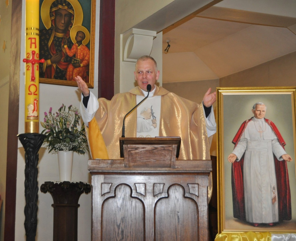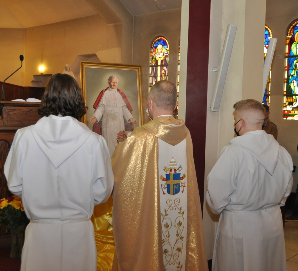 Tym bardziej cieszymy się z tego, że w przeddzień czterdziestej rocznicy zamachu na Ojca Świętego, w dziesiątą rocznicę jego beatyfikacji i siódmą rocznicę kanonizacji powstaje nowe Koło Fundacji Jana Pawła II. Msza Święta, którą celebrował ks. Zbigniew Wcisło SChr, przełożony prowincji Towarzystwa Chrystusowego dla Polonii Zagranicznej obejmującą Francję, Hiszpanię i Portugalię, miała charakter bardzo uroczysty. Mając wielką radość w sercach, przedstawiciele nowo powstałego Koła wnieśli w procesji relikwie Świętego i złożyli je na ołtarzu. Homilię ks. Zbigniew oparł o osobiste świadectwo spotkania, będąc w klasie maturalnej, z Ojcem Świętym, które zaowocowało powołaniem kapłańskim.
