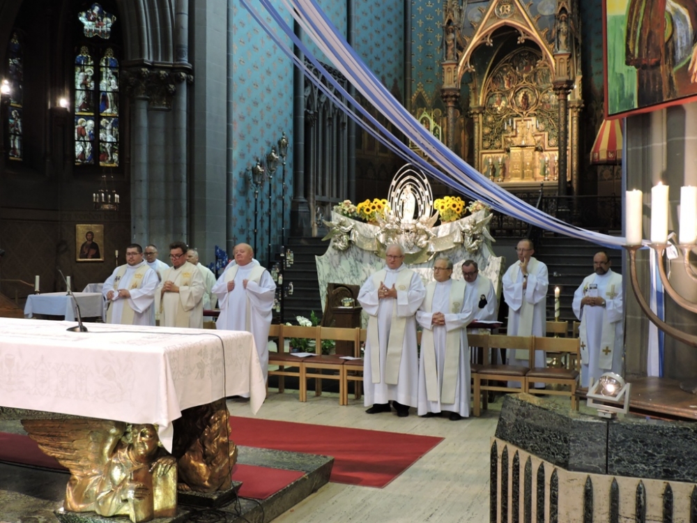 Wspólne pielgrzymowanie to również okazja do poznania nowych duszpasterzy, do podziękowania tym, którzy udają się z duszpasterską posługą w inne części Francji i do powinszowania tym, którzy obchodzą osobiste święta i uroczystości. Do pracy wśród osób polskiego pochodzenia w północnej Francji przybyli ks. Piotr Szot (do Barlin i Noeux-les-Mines, który też objął funkcję duchowego opiekuna – Dyrektora Związku Mężów Katolickich) i ks. Piotr Lizoń SChr (do Guesnain – Dechy – Ecaillon – Masny – Monchecourt). Podziękowaliśmy za wieloletnią posługę w parafiach polonijnych w Nord i Pas-de-Calais oraz duchową opiekę nad kobiecymi stowarzyszeniami (Związkiem Polek i Bractwem Różańcowym) ks. Ryszardowi Kaczorowi SChr, który podejmuje duszpasterskie obowiązki w regionie paryskim. Poznaliśmy też nowego Dyrektora Bractw Żywego Różańca: został nim o. Roman Domagała OMI, duszpasterz z Noyelles-sous-Lens – Méricourt Corons – Liévin – Mazingarbe. W końcu z urodzinowymi życzeniami i upominkiem pospieszyliśmy do jednego z starszych wiekiem, ale młodego duchem ks. Władysława Dobrocia SChr, duszpasterza Polaków z Dunkierki i Boulogne-sur-Mer oraz kapelana kierowców ciężarówek.