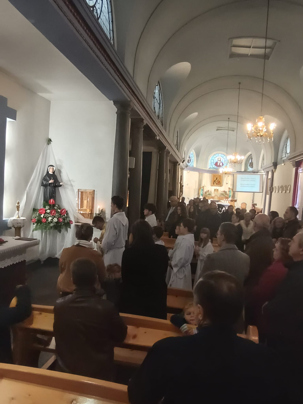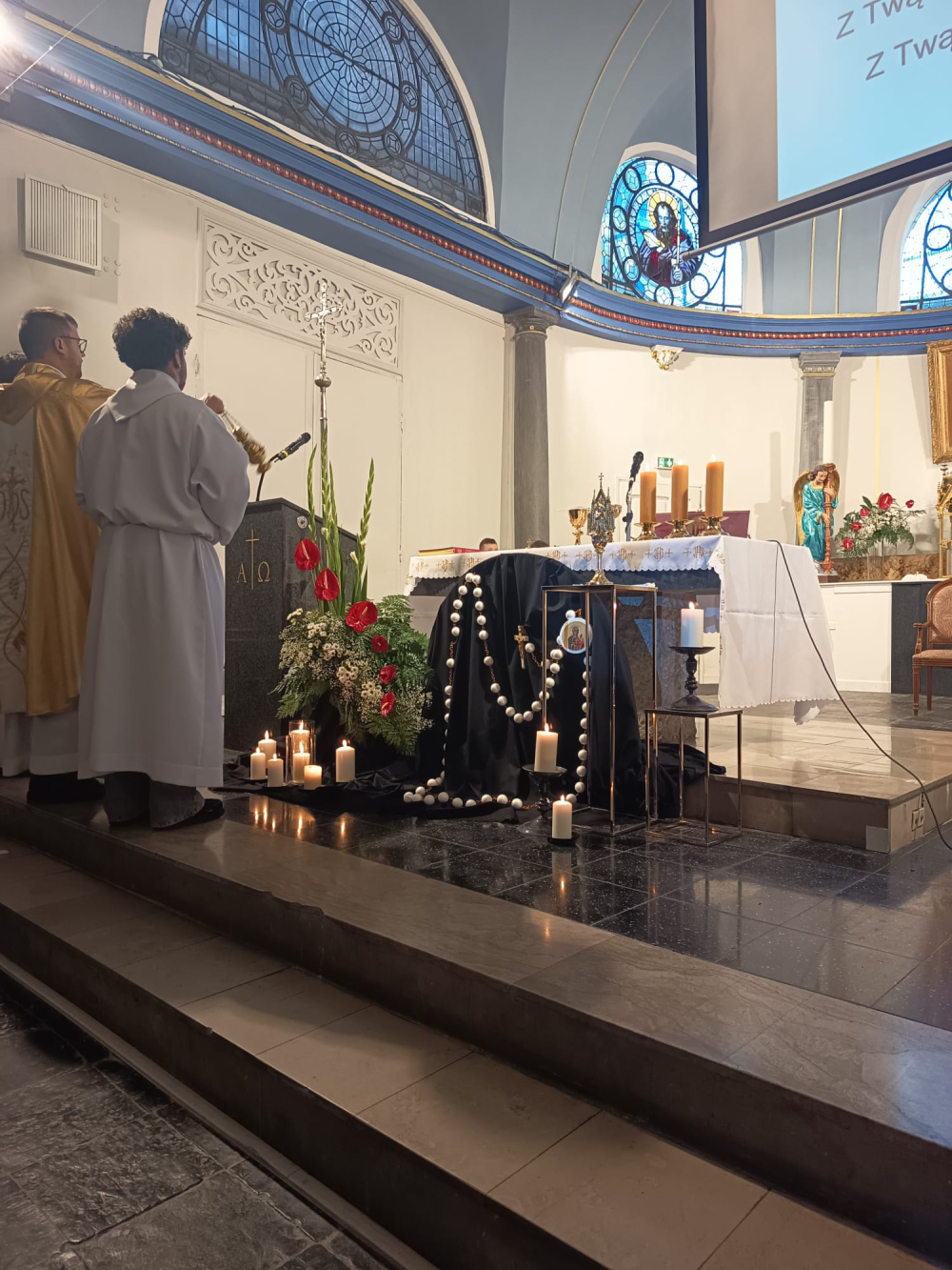 W ten właśnie dzień cała wspólnota parafialna miała okazję podziękować Panu Bogu za wszelkie łaski i dobrodziejstwa, podziękować za dar doświadczanego Jego Miłosierdzia na drogach codzienności, na drogach realizacji życiowego powołania. Towarzyszące wspólnej modlitwie relikwie św. Faustyny, które po jej zakończeniu każdy mógł uczcić zostały na stałe umieszczone w kaplicy, w której Polonia z Lille i okolic od lat gromadzi się na Eucharystii. A ta uroczysta Msza Święta była sprawowana w intencji wszystkich Ofiarodawców i Darczyńców oraz parafii i świata całego. Uroczystościom towarzyszyły śpiewy i scholi z PMK Roubaix-Lille.