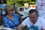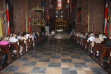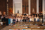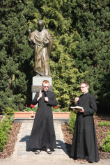W ramach obchodów Roku Życia Konsekrowanego zaprosiliśmy do naszego Domu Głównego w Poznaniu Rodziców księży, braci i kleryków naszego Zgromadzenia. Tegoroczne spotkanie rodziców rozpoczęło się 5 czerwca wspólnym obiadem w zakonnym refektarzu. Mamy radość gościć 88 naszych najbliższych krewnych mieszkających na co dzień w Polsce, jak również za granicą. W Godzinie Miłosierdzia wszyscy uczestnicy odmówili Koronkę do Bożego Miłosierdzia przed obrazem Jezusa Miłosiernego w kaplicy seminaryjnej. Następnie udali się do auli na projekcję filmu o Słudze Bożym Kardynale Auguście Hlondzie. Uroczystej Eucharystii o godzinie 17:30 przewodniczył Wikariusz Generalny ks. Bogusław Burgat TChr. W homilii ksiądz Wikariusz przybliżył kult Serca Jezusowego, który jest bardzo ważnym elementem duchowości każdego chrystusowca oraz wyraził głębokie uznanie dla rodziców wszystkich chrystusowców. O godzinie 20:00 rozpoczęła się adoracja przygotowana przez scholę naszego seminarium pod kierownictwem ks. Roberta Nalepki. Wieczorna modlitwa zakończyła się błogosławieństwem Najświętszym Sakramentem i Apelem łączącym zebranych w Poznańskiej kaplicy z Jasną Górą. Sobotni dzień rozpoczęliśmy od porannej Mszy Świętej. Podczas homilii Rektor Wyższego Seminarium Duchownego ks. Andrzej Łysy zwrócił uwagę na wyjątkową moc modlitwy i podkreślił jej rolę we wspólnocie rodziców księży, braci i kleryków chrystusowców. Ksiądz Rektor zaznaczył również wyjątkową rolę rodziny w wychowaniu kandydatów do kapłaństwa i życia zakonnego. Sobotnie przedpołudnie było przeznaczone na zwiedzanie Ostrowa Tumskiego. Nasi rodzice poznali historię katedralnej wyspy oraz znajdujących się na niej obiektów. Zwiedzili poznańską katedrę, schodząc do jej podziemi oraz nowe muzeum „Brama Poznania”. Po południu można było obejrzeć film poświęcony osobie Ojca Ignacego Posadzego TChr, Współzałożyciela Zgromadzenia. O 16.30 wszyscy zebrali się na czerwcowym nabożeństwie przy figurze Najświętszego Serca Jezusowego w naszym parku, a po nim rozpoczęło się wspólne grillowanie. Sobotni słoneczny dzień zakończył spektakularny koncert pod nazwą „SAMARA-SONG”. Burzowe chmury, które zebrały się nad Poznaniem nie zdołały przysłonić radosnej atmosfery ostatniego dnia tegorocznego spotkania rodziców księży, braci i kleryków chrystusowców. Niedziela rozpoczęła się w kaplicy seminaryjnej wspólną kontemplacją Ewangelii, po której wszyscy zebrami odśpiewali Jutrznię. Około godziny 9:00 rodzice i krewni chrystusowców spotkali się w auli seminaryjnej z Przełożonym Generalnym Towarzystwa Chrystusowego dla Polonii Zagranicznej ks. Ryszardem Głowackim TChr. Centralnym punktem dnia była uroczysta Eucharystia, której przewodniczył Przełożony Generalny. W homilii ks. Generał podkreślił Dobrą Nowinę głoszoną przez św. Pawła o nadziei zbawienia dla tych, którzy mimo przeciwności trwają w wierze. Zwrócił również uwagę na słowa Apostoła: „Uwierzyłem, dlatego przemówiłem”, które kaznodzieja odniósł do silnej wiary rodziców oraz ich świadectwa wobec swoich synów, którzy wychowując się w domu rodzinnym mieli odpowiednie warunki do wzrastania w powołaniu. Podkreślił też, jak istotna jest akceptacja, ze strony rodziców, tak wyjątkowego powołania jakim jest życie zakonne i kapłaństwo w Towarzystwie Chrystusowym. Na zakończenie homilii ks. Generał, nawiązując do Ewangelii, przypomniał, że wszyscy jesteśmy braćmi Jezusa oraz podkreślił fakt, że wszystkich rodziców chrystusowców łączy wspólna miłość i wiara w Chrystusa. Przełożony Generalny ks. Ryszard Głowacki TChr sprawował Mszę świętą w intencji wszystkich żyjących i zmarłych rodziców oraz rodziny chrystusowców, Ekonom Generalny ks. Zbigniew Kutnik TChr w intencji zmarłych przyjaciół i dobrodziejów naszego Towarzystwa, Rektor Seminarium ks. Andrzej Łysy TChr w intencji rodziców wszystkich chrystusowców, natomiast Referent Powołań ks. Marcin Stefanik TChr modlił się o powołania do Towarzystwa. Nie zabrakło również pamiątkowego zdjęcia. Na zakończenie obiadu Przełożony Generalny zaprosił wszystkich rodziców chrystusowców na przyszłoroczne spotkanie. Za radość spotkania, wszystkim przybyłym z serca dziękujemy - Bóg zapłać! dk. Mateusz Socha TChr Zdjęcia do pobrania (plik zip do rozpakowania - waga ok. 340 MB)