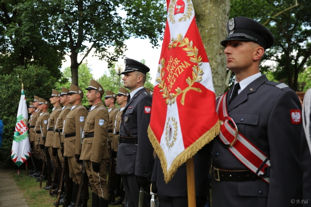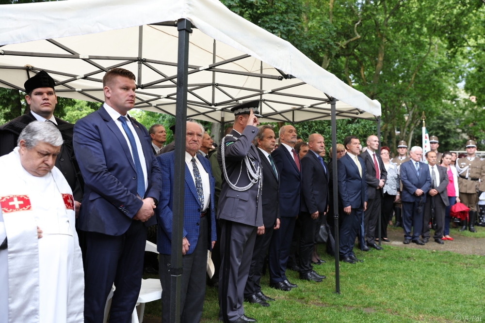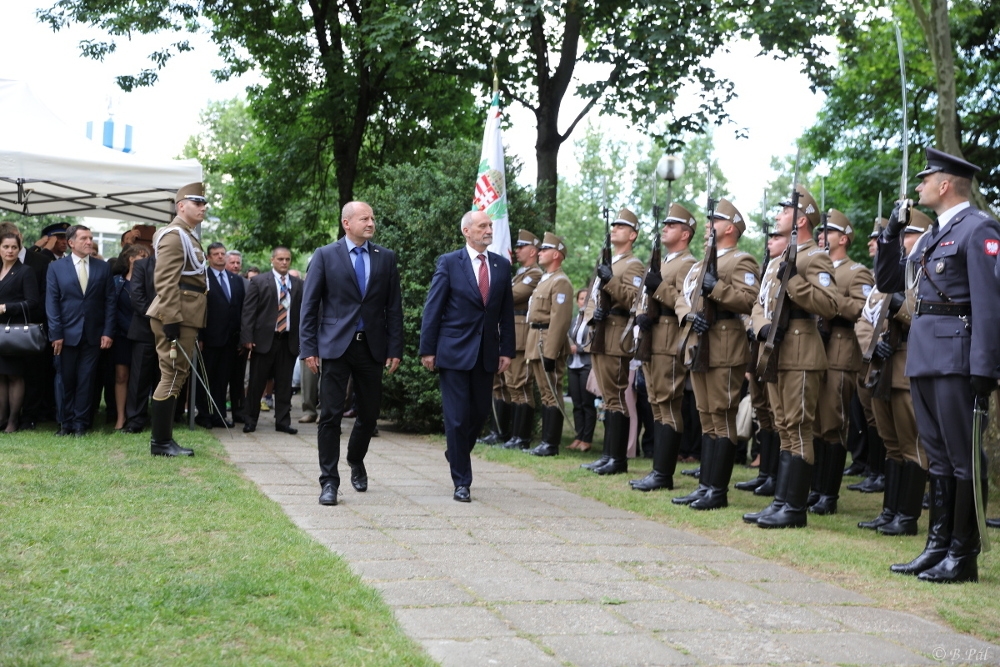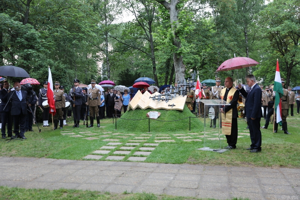 W tej nadzwyczaj podniosłej uroczystości udział wzięli ministrowie obrony Polski i Węgier panowie Antoni Macierewicz i István Simicskó, przedstawiciele Ambasady RP w Budapeszcie z ambasadorem Romanem Kowalskim, Andrzej Kunert sekretarz Rady Ochrony Pamięci Walk i Męczeństwa w Warszawie, przedstawiciele rządu węgierskiego, władz lokalnych z burmistrzem Lajosmizse Andrásem Basky, konsul honorowy RP w Segedynie dr Karol Biernacki, reprezentanci polskich i węgierskich sił zbrojnych, rzecznik narodowości polskiej w Zgromadzeniu Narodowym Węgier dr Csúcs Lászlóné Halina, przedstawiciele Polonii węgierskiej z proboszczem Polskiej Parafii Personalnej na Węgrzech ks. Krzysztofem Grzelakiem SChr. i przewodniczącą Ogólnokrajowego Samorządu Polskiego na Węgrzech dr Rónayné Słabą Ewą, a pomnik poświęcili polscy i węgierscy duchowni kościoła rzymsko-katolickiego i pastor kościoła reformackiego.