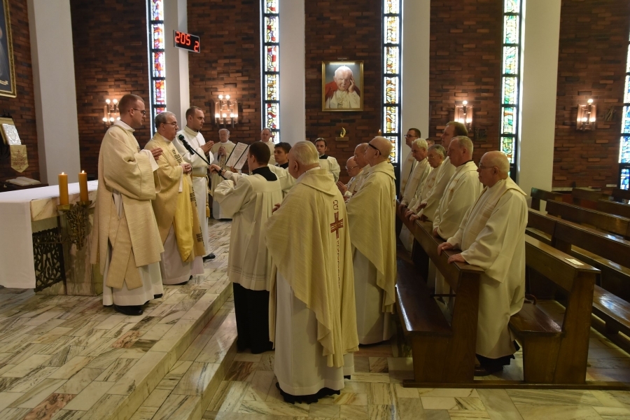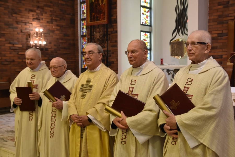 Uroczysta Eucharystia rozpoczęła się o godz. 11. Do grona dostojnych jubilatów należą: ks. Jan Guzikowski SChr, ks. Józef Kamiński SChr, ks. Stanisław Kuczaik SChr, ks. Bogusław Nadolski SChr, ks. Zbigniew Olbryś SChr i ks. Edward Szymanek SChr. Czterech spośród nich przybyło do Domu Głównego w Poznaniu, by celebrować rocznicę święceń. Wśród uczestników liturgii, oprócz kleryków, przedstawicieli proboszczów z parafii chrystusowców, znaleźli się również krewni i goście jubilatów. Swoją obecnością zaszczyciły również Siostry Misjonarki Chrystusa Króla i Siostry Wspólnej Pracy od Maryi Niepokalanej.