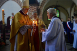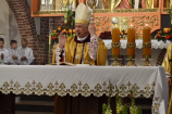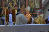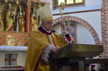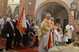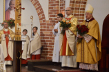 Przed uroczystym błogosławieństwem sekretarz ks. Arcybiskupa odczytał dekret, potwierdzający konsekrację goleniowskiej świątyni. Od tego momentu – każdego 22 czerwca – wspólnota będzie świętowała rocznicę poświęcenia kościoła. Następnie przedstawiciele goleniowskiej wspólnoty parafialnej, podziękowali Księdzu Arcybiskupowi Andrzejowi Dziędze, Księdzu Generałowi Krzysztofowi Olejnikowi SChr oraz Księdzu Proboszczowi Krzysztofowi Musiałkowi SChr. W przemówieniu Przewodniczący Rady Parafialnej powiedział m.in.: Serdecznie dziękujemy za ten niezwykły i wyjątkowy akt liturgiczny – konsekracji ołtarza oraz naszego kościoła, za zawierzenie Bogu murów tej świątyni i nas wszystkich. W ten sposób tak drogi naszemu sercu – kościół pod wezwaniem św. Katarzyny Aleksandryjskiej – ma już Bożą pieczęć. Pragniemy zapewnić, że zrobimy wszystko, aby ten kościół, dla nas wierzących, był godnym miejscem do spotkania z Bogiem, miejscem do przebaczania, miejscem do duchowej obrony naszych rodzin przed laicyzacją, moralnym chaosem współczesnego świata, miejscem wdrażania chrześcijańskich wartości do naszych domów, chrześcijańskiego wychowania naszych dzieci i wnuków. Mamy w tym wszystkim olbrzymie wsparcie i siłę naszej patronki św. Katarzyny Aleksandryjskiej. Parafianie podziękowali również ks. Proboszczowi za erygowanie kaplicy wieczystej adoracji, za możliwość adorowania Najświętszego Sakramentu, przez cały dzień, w otwartym kościele. Wypada w tym miejscu zaznaczyć, że od kilku tygodni trwa w goleniowskim kościele św. Katarzyny Aleksandryjskiej „regotyzacja” ścian świątyni. Do tej pory udało się odświeżyć i pomalować na biało wszystkie ściany kościoła oraz kaplice boczne. Ostatnia „regotyzacja” miała miejsce trzydzieści lat temu, gdy w Goleniowie proboszczował ks. Marian Koniewski SChr.