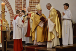 Liturgia, która rozpoczęła się o godz. 17.00, była niecodzienna, niezwykła, przejmująca i pełna symboli o głębokim znaczeniu. Ksiądz Arcybiskup wraz z koncelebransami i asystą udał się najpierw do prezbiterium. Po przywitaniu przez proboszcza parafii ks. Krzysztofa Musiałka SChr Metropolita szczecińsko-kamieński pobłogosławił wodę, a następnie poświęcił nią ściany kościoła, wiernych i ołtarz, nawiązując w ten sposób do sakramentu chrztu, który czyni z wiernych świątynię Ducha Świętego. Liturgia Słowa zwróciła uwagę na znaczenie i godność świątyni chrześcijańskiej. Po niej nastąpiły właściwe obrzędy dedykacji (konsekracji) ołtarza i kościoła tj. namaszczenie olejem krzyżma ołtarza i ścian kościoła. Pasterz archidiecezji po odmówieniu modlitwy konsekracyjnej rozlał na ołtarzu olej i namaścił go. W tym obrzędzie oddał kościół na własność Bogu, aby był on tylko Bogu oddany i Jemu służył jako Jego dom do sprawowania Najświętszej Ofiary. Namaścił też olejem w dwunastu miejscach ściany świątyni, których widzialnym i wymownym znakiem jest dwanaście „zacheuszek”, umieszczonych na ścianach jako wymowny znak konsekracji i wyznacznik miejsca poświęconego Bogu. Po namaszczeniu ołtarza i ścian kościoła nastąpił obrzęd okadzenia. Ksiądz Arcybiskup zasypał kadzidło na ołtarzu, następnie okadził ołtarz oraz ściany kościoła, natomiast Ksiądz Generał dokonał okadzenia zgromadzonych wiernych oraz księdza Arcybiskupa. Namaszczony świętym olejem ołtarz został nakryty przez siostry misjonarki Chrystusa Króla (niezwykle pięknie i gorliwie posługujących w Goleniowie od wielu lat) białym obrusem i w ten sposób przygotowany do sprawowania Najświętszej Ofiary. W ciągu całego obrzędu, aż do tej pory światła w kościele były wygaszone. Po wypowiedzeninu przez ks. Arcybiskupa słów: Niech w Kościele jaśnieje światło Chrystusa, aby wszystkie ludy osiągnęły poznanie prawdy…, zapaleniu świec ołtarzowych oraz dwunastu świec „zacheuszek” – cały kościół rozświetlił się blaskiem światła, przypominając w ten sposób, że to Chrystus jest Światłością prawdziwą. Liturgię eucharystyczną, która rozpoczęła się z chwilą rozświetlenia ołtarza i kościoła, poprzedziła procesja z darami. Po Komunii Świętej wybrzmiało uroczyste Te Deum.