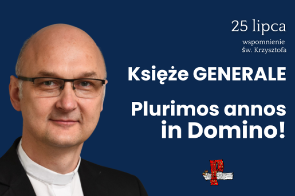 Mniej więcej półmetek czasu wakacyjno-urlopowego wyznacza liturgiczna pamiątka ku czci Świętego Krzysztofa, patrona kierowców i podróżujących, a także naszego Przełożonego Generalnego. Uroczysty obchód w kaplicy Domu Głównego i seminarium zgromadzenia w Poznaniu odbył się w wigilię tego dnia, w czwartek 24 lipca 2025 r. Przybyli nań Współbracia z kraju i zagranicy z przełożonymi prowincjalnymi oraz członkami zarządu i rady generalnej, siostry zakonne, pracownicy agend Towarzystwa, przedstawiciele zaprzyjaźnionych instytucji oraz członkowie poznańskich kół RKCh «Odrodzenie». Mszy Świętej przewodniczył Dostojny Solenizant, okolicznościową homilię wygłosił ks. Paweł Jasina SChr, nowo wybrany wikariusz generalny zgromadzenia. Nakreślił w niej kontekst, w którym celebrowana jest ta uroczystość imieninowa – Jubileuszowy Rok Nadziei, niedawno zakończona kolejna Kapituła Generalna zgromadzenia, a także przypominał elementy duchowości chrystusowca, która skupiona jest wokół Eucharystii i niej wypływa. Z niej też wyrasta siła, by budować jedność wspólnoty chrystusowców, jak prosił Założyciel. Z kolei w nawiązaniu do tego testamentu, uczestnictwo w osobistych świętach Współbraci, zwłaszcza Przełożonego Generalnego, stanowi jego realizację i jedność buduje. W końcu, komentując odczytaną Ewangelię (zob. Mt 13,10-17) homilista prosił, aby uczyć się nieustannie słyszeć i widzieć bardziej i więcej, by dostrzec to, co najistotniejsze i czego Pan Bóg od nas pragnie; by odnajdywać drogi wiodącymi ku świętości i nimi podążać.