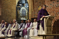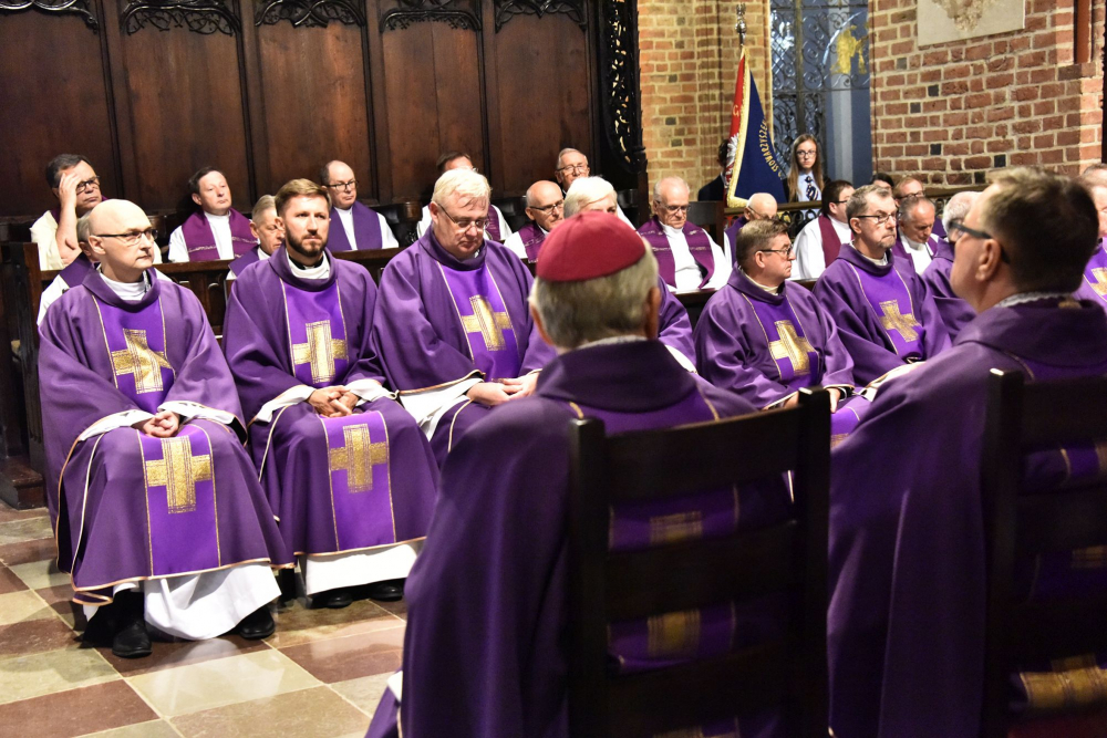 Homilista próbował także tchnąć ducha nadziei. Mówił, że z Wieczernika, którym dla śp. ks. Ryszarda była prastara poznańska katedra i w której otrzymał kapłańskie święcenia wychodzi się na trudy głoszenia Dobrej Nowiny, ale też jest wyjście na Kalwarię, na drogę krzyżową (bo częstokroć przełożeńskie obowiązki stają się takim krzyżem, a na pewno krzyżem jest choroba, której nasz zmarły Współbrat doświadczył w ostatnich tygodniach). Idzie się ku śmierci, kontynuował ks. Jerzy, ale też ku zmartwychwstaniu (i to podkreślał kilkukrotnie). Albowiem w Wieczerniku łamiemy Chleb żywota, który jest Ciałem naszego Pana i którego spożywanie jednoczy z Nim ściśle oraz daje życie wieczne: tu czerpał siły na duszpasterskie i przełożeńskie trudy zmarły kapłan i tu należy nam czerpać siłę na codzienne zmagania i właściwe realizowanie powołania życiowego. Więź z Chrystusem eucharystycznym to jeden z ‘duchowych akumulatorów’, drugim to synowskie oddanie się Maryi, Matce Bożej, które śp. ks. Ryszard wyniósł z domu rodzinnego. Maryja jako nasza Matka, Orędowniczka i Opiekunka, wskazywał kaznodzieja, towarzyszy i wspiera na drogach życia i powołania. Nie zabrakło w rozważaniu bardzo osobistych odniesień ze wspólnego duszpasterzowania na niemieckiej ziemi, toteż ks. Grynia zakończył je słowem podziękowania nie tylko za życie i kapłańską posługę, ale także za przyjaźń.