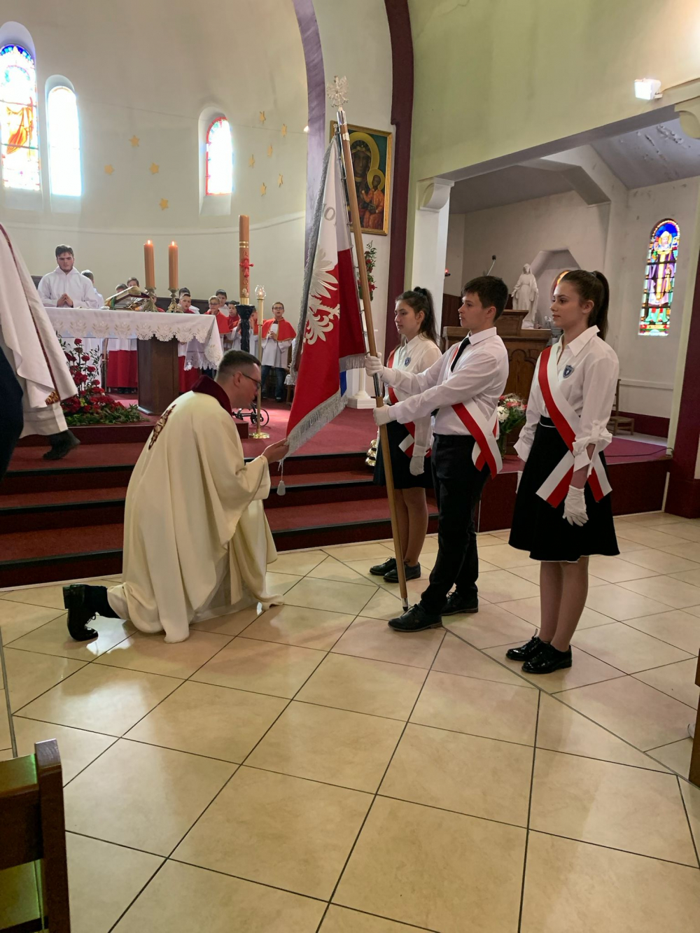 Podobna uroczystość i też w niedzielę 15 maja 2022 r. odbywała się również w stolicy Islandii, Reykjaviku, gdzie podczas Mszy Świętej w miejscowej katedrze pw. Chrystusa Króla pod przewodnictwem pasterza diecezji bpa Davida Tencera OFMCap. został poświęcony sztandar Szkoły Polskiej im. Jana Pawła II w Reykjaviku. Na uroczystości przybyli przedstawiciele Prezydenta, Rządu, Sejmu i Senatu RP, minister Jan Dziedziczak, Pełnomocnik Rządu ds. Polonii i Polaków Zagranicą, minister Adam Kwiatkowski, Sekretarz Stanu w Kancelarii Prezydenta RP odpowiedzialny za kontakty i współpracę z Polonią i Polakami za Granicą, pani wicemarszałek Sejmu Małgorzata Maria Gosiewska. Celebracje związane z poświęceniem sztandaru były częścią wizyty oficjalnej delegacji naszych władz państwowych w stolicy Islandii, w której, na zaproszenie ministra Dziedziczaka, uczestniczyli ks. Krzysztof Olejnik SChr, przełożony generalny Towarzystwa Chrystusowego i ks. Leszek Kryża SChr, dyrektora Biura Zespołu Pomocy Kościołowi na Wschodzie przy KEP. Przybyły także władze Zgromadzenia Sióstr Misjonarek Chrystusa Króla dla Polonii Zagranicznej z Matką Ewą Kaczmarek MChR, przełożoną generalną zgromadzenia na czele, bo trzeba dodać, że od kilku lat siostry misjonarki organizują tam duszpasterstwo polonijne, naukę religii w języku polskim a jedna z nich – s. Dorota Michna MChR – jest dyrektorką Szkoły Polskiej. Jako chrystusowcy też mamy swój epizod w tym kraju: duszpastersko posługiwaliśmy tam od końca lat dziewięćdziesiątych XX w. po nieco ponad dekadę obecnego stulecia, a szczególną kartę zapisał śp. ks. Aleksander Michałowski SChr.