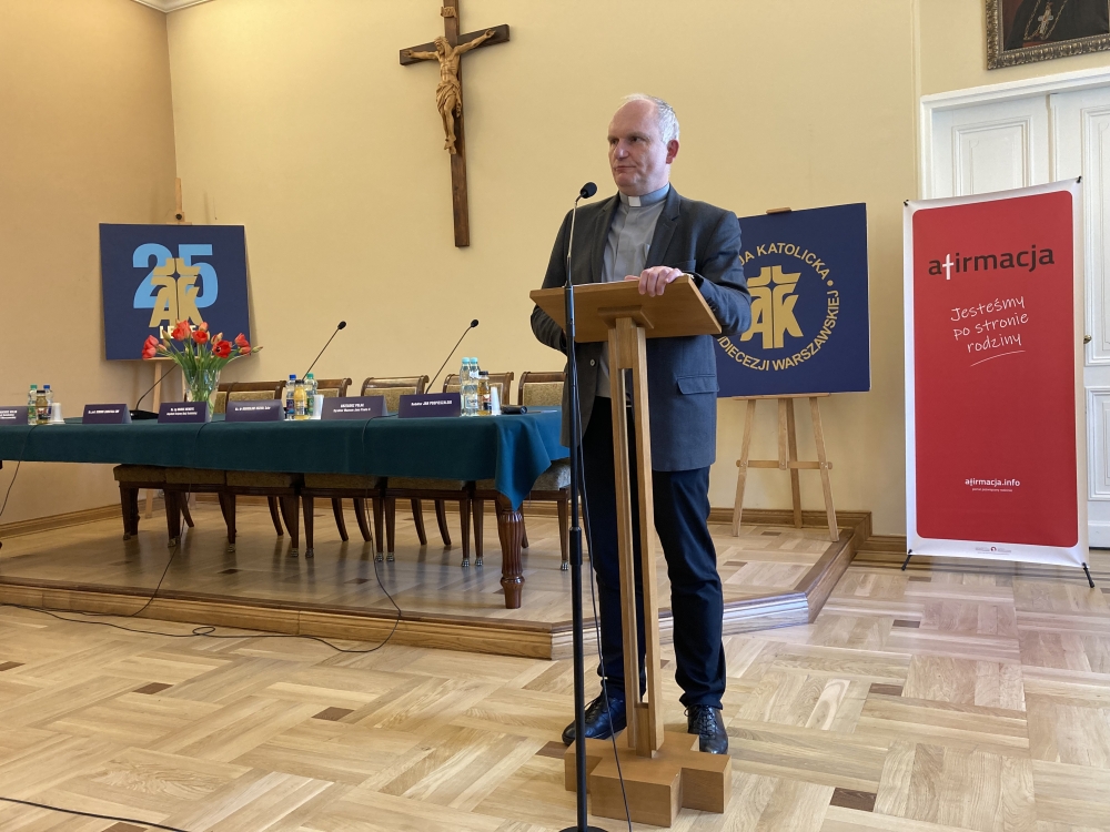 Po wystąpieniu Księdza Biskupa, pan Prezes kontynuował powitanie zaproszonych Gości, w tym p. poseł Marię Kurowską, członków Zarządu Krajowego i Rady Krajowej Akcji Katolickiej, Prezesów i Członków Parafialnych Oddziałów Akcji Katolickiej a także Prelegentów i red. Jana Pospieszalskiego, którego poprosił o dalsze prowadzenie konferencji.