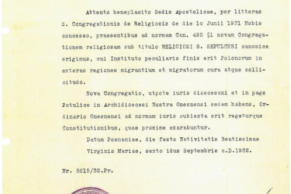 8 września to dla Towarzystwa Chrystusowego dzień szczególny. Właśnie tego dnia, w 1932 r., z inicjatywy kardynała Augusta Hlonda – Prymasa Polski – oraz ks. Ignacego Posadzego SChr, powołano do życia zgromadzenie, które miało jedno, jasno określone zadanie: służyć duchowo Polakom rozsianym po świecie, wspierać ich w zachowaniu wiary ojców i narodowej tożsamości.