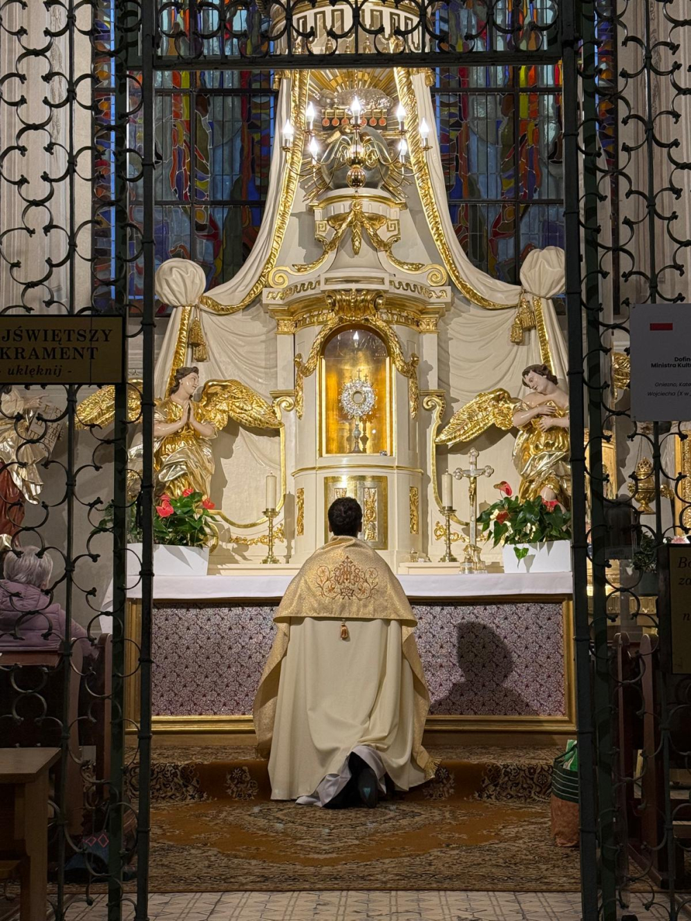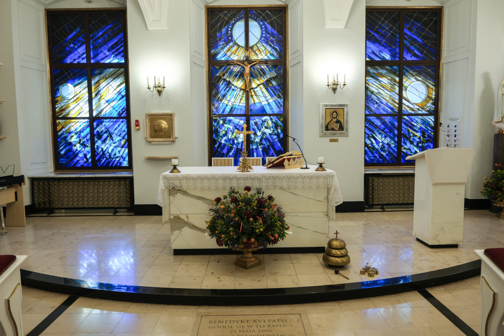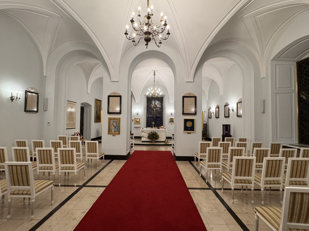 * Wreszcie trzecim miejscem, gdzie tego dnia modliliśmy się za Ojczyznę, ale także o beatyfikację Czzcigodnego Sługi Bożego, był pałac prezydenta RP, a dokładnie kaplica tegoż pałacu. W modlitwie tej - dzięki życzliwości ks. Jarosława Wąsowicza SDB, kapelana prezydenta RP - uczestniczył ks. Paweł Jasina SChr, wikariusz generalny i ks. Bogusław Kozioł SChr, rektor WSD TChr i postulator.