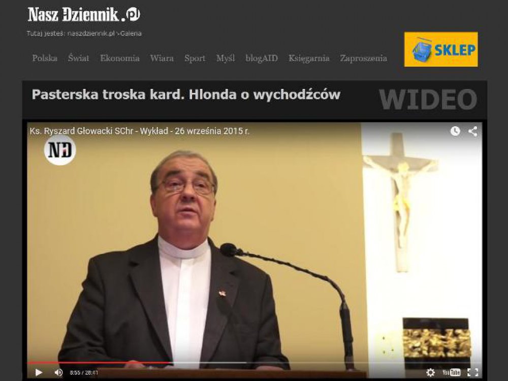 Na witrynie internetowej „Naszego Dziennika” w dziale „Galeria” został zamieszczony, w wersji wideo, referat ks. Ryszarda Głowackiego – Przełożonego Generalnego Towarzystwa Chrystusowego zatytułowany: „Pasterska troska Prymasa Polski Kard. Hlonda o wychodźców wobec współczesnych wyzwań duszpasterstwa polonijnego” wygłoszony 26 września 2015 r. w Rumi podczas Ogólnopolskiego Kongresu „Katolicy wobec zagadnień chwili”.
