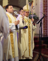 Po tym wprowadzeniu rozpoczęło się uroczyste błogosławieństwo wyremontowanych instrumentów, którego dokonał Ksiądz Arcybiskup. Wraz z końcem modlitwy po kilkudziesięciu latach milczenia ponownie zabrzmiał w Stargardzie 560 letni WIELKI DZWON Jan Maria, a także pochodzące również z XV w. dwa małe dzwony. Uczestnicy uroczystości nie musieli wychodzić na zewnątrz, albowiem w świątyni transmitowano obraz i dźwięk z wieży kościelnej, gdzie na nowo zamontowano odrestaurowane instrumenty. Wraz z wybudzaniem dzwonów rozpoczęła Msza Święta pod przewodnictwem i z homilią pasterza archidiecezji szczecińsko-kamieńskiej z piękną oprawą muzyczną parafialnego chóru młodzieżowego «Wieczernik» przy akompaniamencie orkiestry pod batutą p. Kingi Trypuć. W homilii abp Śmigiel wskazał m.in.: Dźwięk dzwonu buduje też pewną lokalną tożsamość naszej ziemi. Dlatego jestem bardzo wdzięczny, że na początku mojej posługi mogę uczestniczyć w takiej uroczystości. Mamy wokół siebie mnóstwo dźwięków, nawet towarzyszy nam trochę hałasu i w takim świecie tym bardziej potrzeba tego dzwonu.