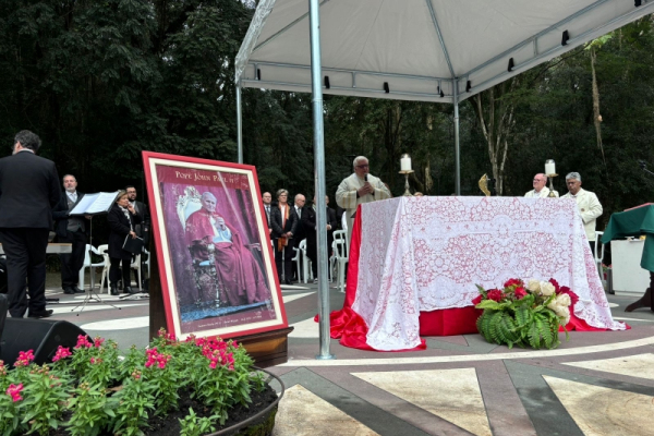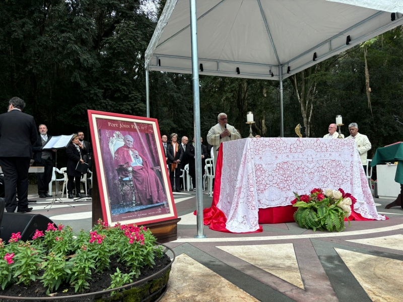 W niedzielę 7 lipca 2024 r. przedstawiciele Polonii Ziemi Krzyża Południa zgromadzili się w kurytybskim parku św. Jana Pawła II na Mszy Świętej, aby upamiętnić 44 rocznicę wizyty Papieża-Polaka w tym mieście. Na uroczystość złożyło się wysłuchanie historycznych nagrań z pamiętnego spotkania, które przechowywane są przez opiekunkę parku, panią Danutę, oraz Eucharystia, na zakończenie której jej uczestnicy zostali pobłogosławieni relikwiami naszego Świętego Rodaka. Mszę Świętą odprawił piszący sprawozdanie ks. Kazimierz Długosz SChr, który też wygłosił okolicznościowe kazanie. Poświęcił je życiu i nauczaniu św. Jana Pawła II jako papieża prawdy, życia, rodziny i wolności oraz zachęcał w nim do życia i przekazywania jego spuścizny przyszłym pokoleniom. Odnosząc z kolei do tekstu niedzielnej Ewangelii, w którym czytamy o chłodnym przyjęciu Jezusa przez współrodaków z Nazaretu i słyszymy to Jezusowe zdanie, że żaden prorok nie jest mile widziany w swojej ojczyźnie (por. Mk 6,4; Łk 4,24b), homilista nawiązał do obecnej sytuacji w Polsce: do mocno zauważalnej tendencji niszczenia wizerunku Ojca świętego oraz innych działań mających na celu zmniejszenie wpływu Ewangelii na życie mieszkańców naszego kraju. Choć podobną aktywność można zauważyć niestety w całym świecie, to jednak w ojczyźnie św. Jana Pawła II są bardzo widoczne i bolesne. Pani Kustosz parku i zarazem skansenu polskiej emigracji w Brazylii skierowała słowa podziękowania do wszystkich, którzy przyczynili się i przyczyniają się do rozwoju tego ważnego miejsca od czasu jego powstania. Całą uroczystość uświetnił swoim śpiewem chór «Harmonia».