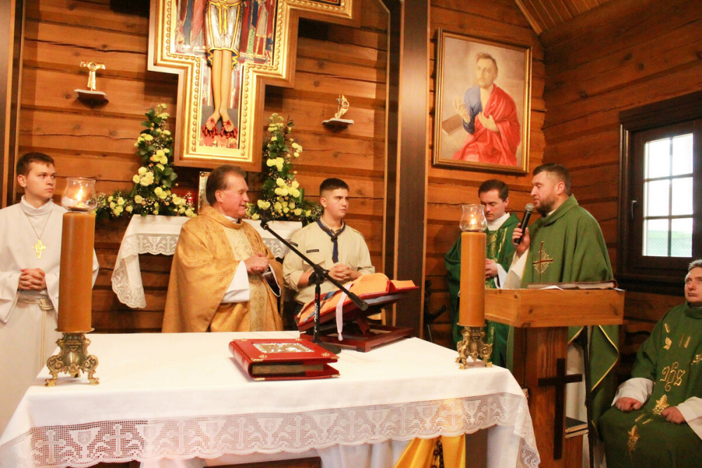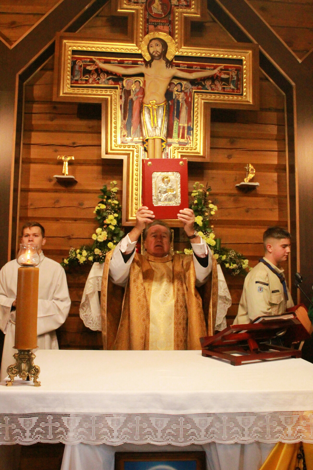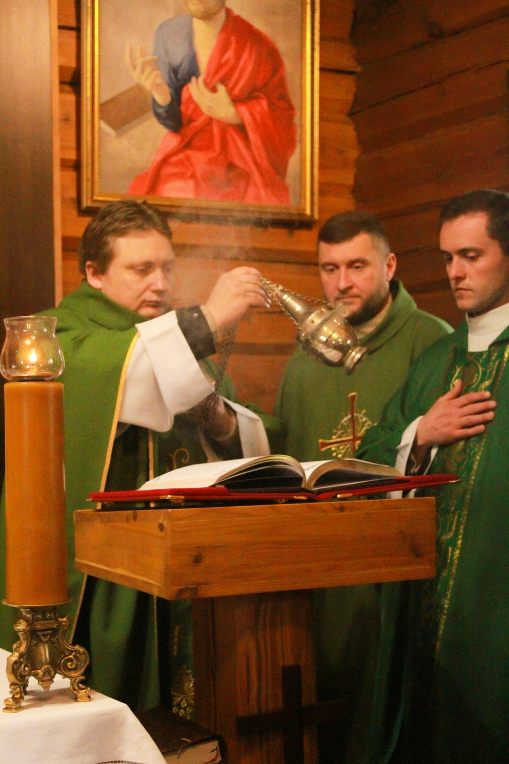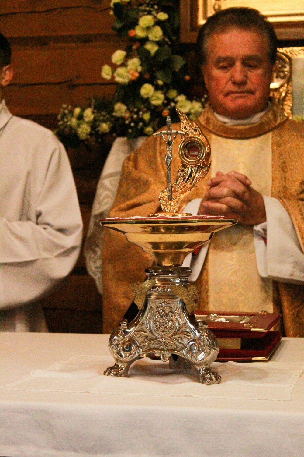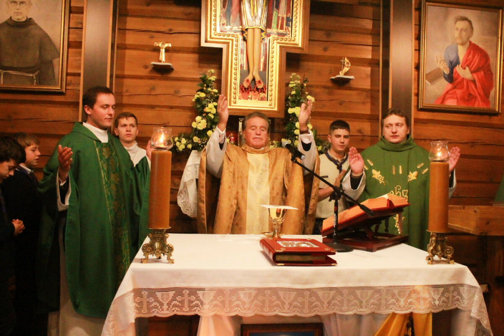 Uroczystej Mszy Świętej przewodniczył i instalacji relikwii dokonał ks. kanonik Władysław Zawalniuk, proboszcz kościoła Świętych Szymona i Heleny w Mińsku tzw. Czerwonego kościoła, który obecnie jest zamknięty dla wiernych. Na zakończenie uroczystości licznie zgromadzeni uczestnicy pobożnie uczcili relikwie, powierzając swoje rodziny i przyszłość wspólnoty parafialnej opiece świętego Papieża Jana Pawła II.
