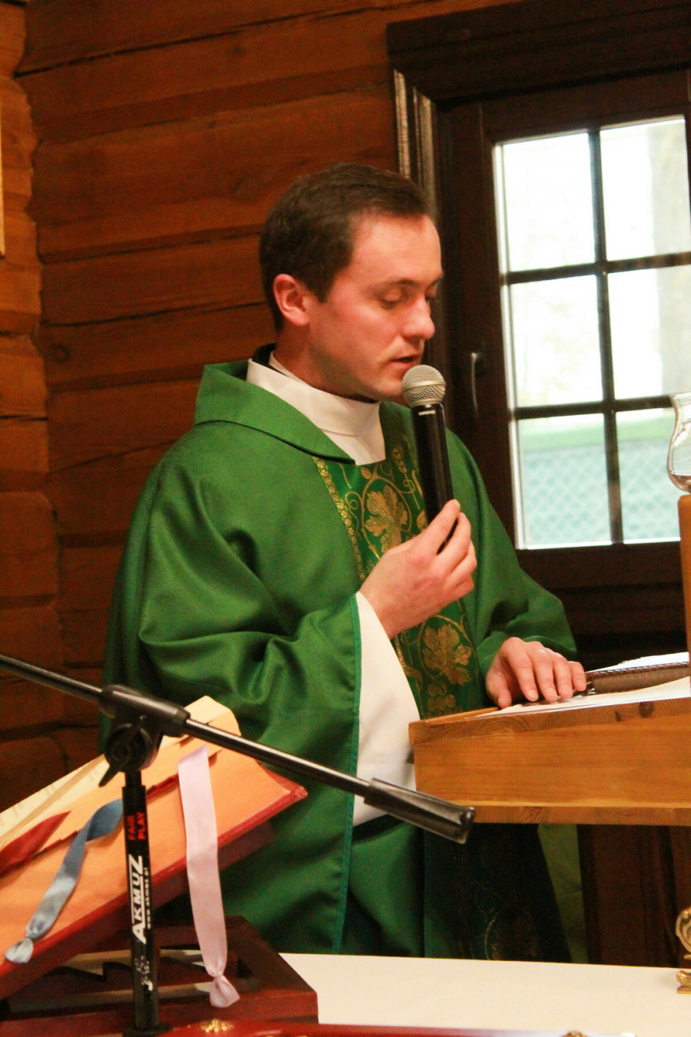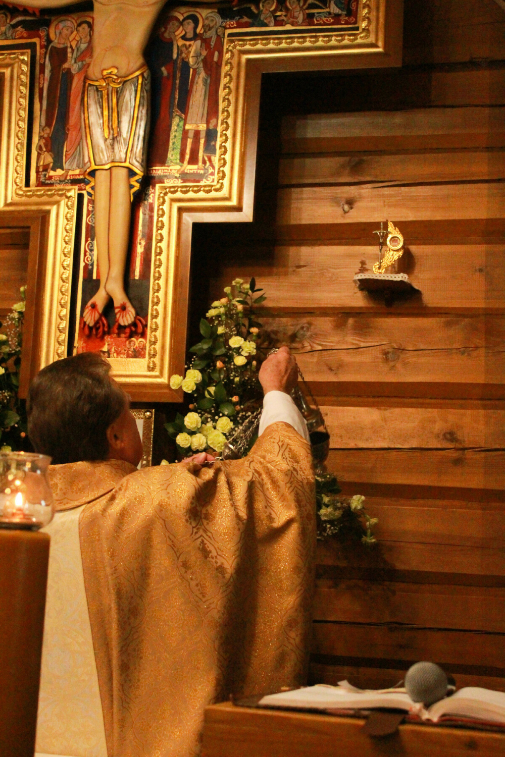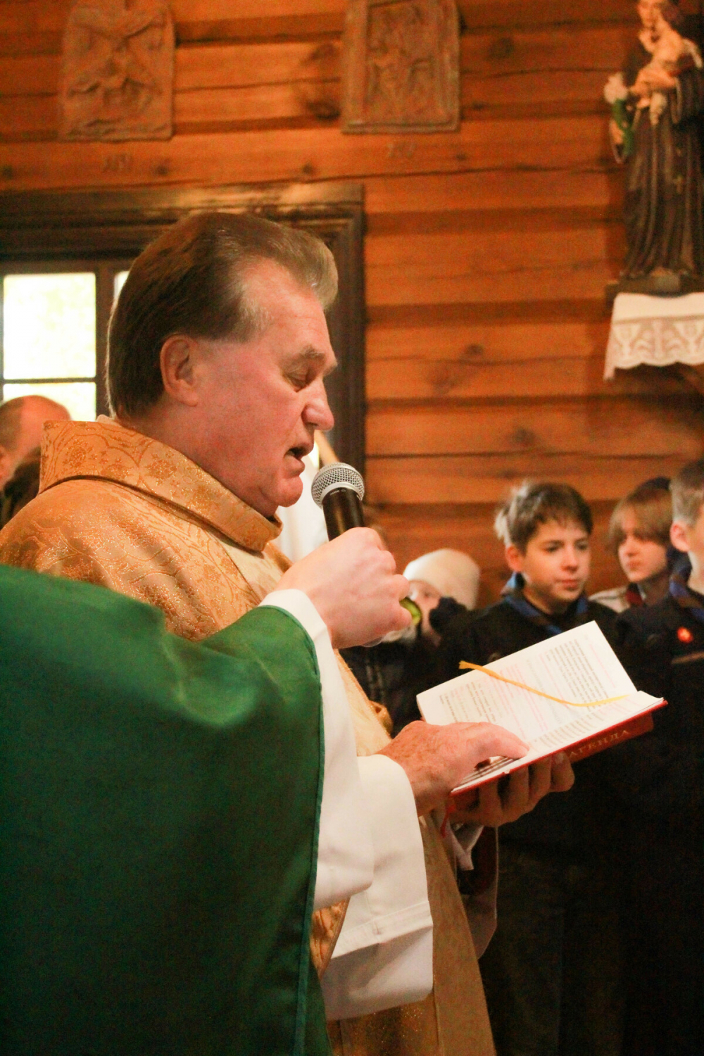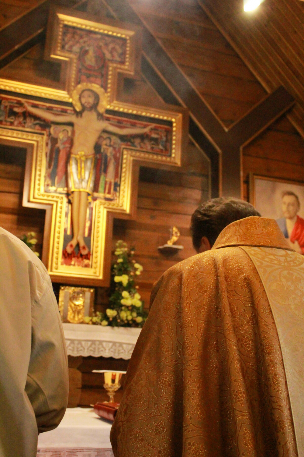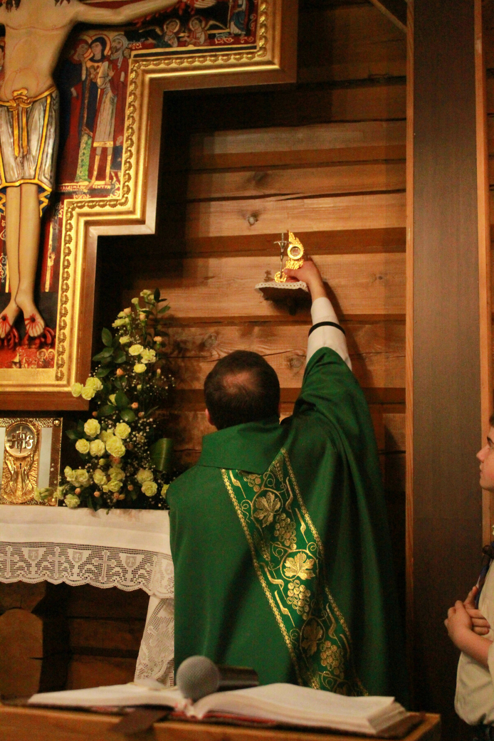 Uroczystej Mszy Świętej przewodniczył i instalacji relikwii dokonał ks. kanonik Władysław Zawalniuk, proboszcz kościoła Świętych Szymona i Heleny w Mińsku tzw. Czerwonego kościoła, który obecnie jest zamknięty dla wiernych. Na zakończenie uroczystości licznie zgromadzeni uczestnicy pobożnie uczcili relikwie, powierzając swoje rodziny i przyszłość wspólnoty parafialnej opiece świętego Papieża Jana Pawła II.