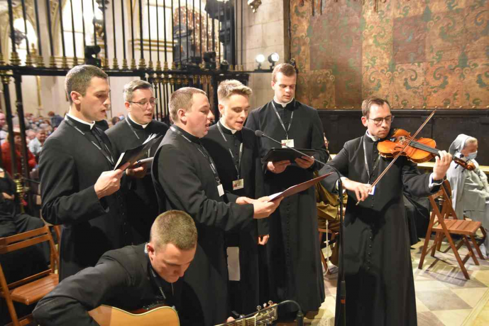 Odbywająca się w auli o. Kordeckiego ‘artystyczna’ część czuwania wprowadziła wszystkich w klimat refleksji i modlitwy. Taki charakter bowiem miały piosenki Marcina Stycznia. Były one przywołaniem orędownictwa świętych i błogosławionych, byśmy naśladowali ich cnoty a przez stawali się katolikami zawsze i wszędzie. To hasło i motto Nocy Czuwania, jak i cały list pasterski kard. Augusta Hlonda, Założyciela Towarzystwa Chrystusowego, z którego te słowa zostały wzięte, rzeczywiście towarzyszyły naszej modlitwie i zamyśleniu.