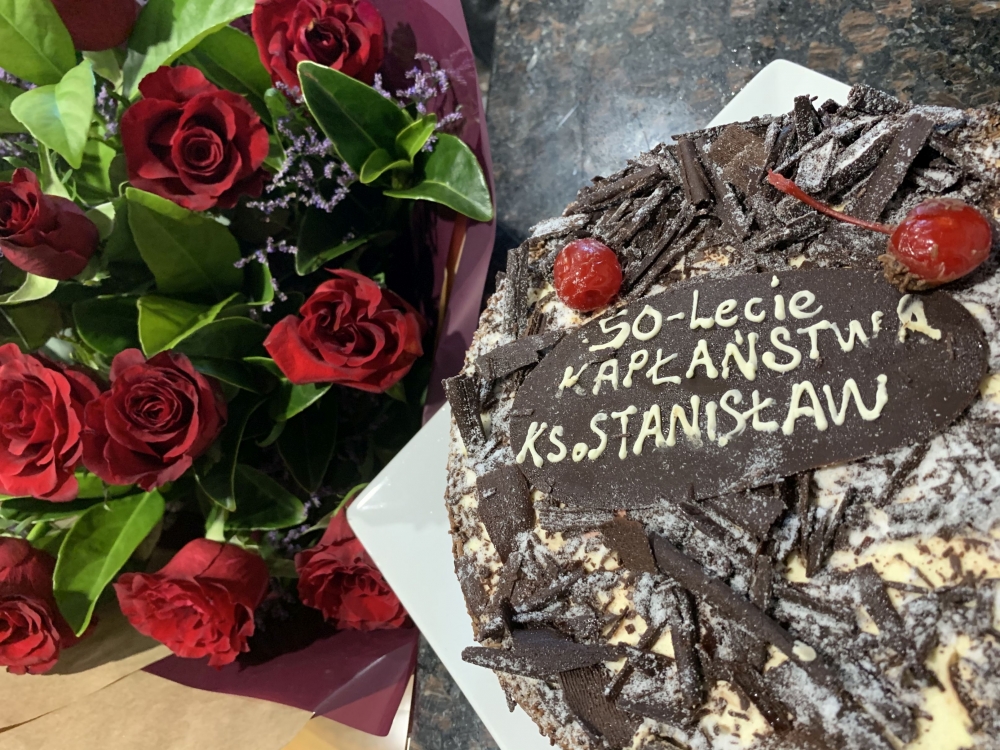Ks. Stanisławowi dostojnemu ZŁOTEMU JUBILATOWI życzymy wielu łask Bożych, opieki Matki Bożej Królowej Towarzystwa Chrystusowego i Polonii, dobrego zdrowia i sił do dalszej posługi duszpasterskiej wśród Polonii.