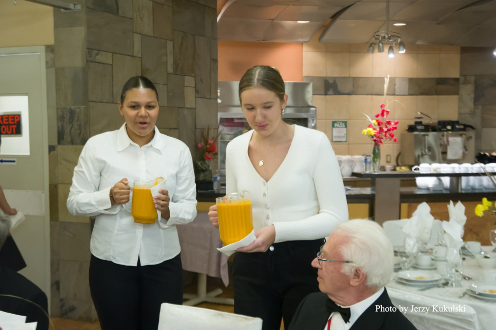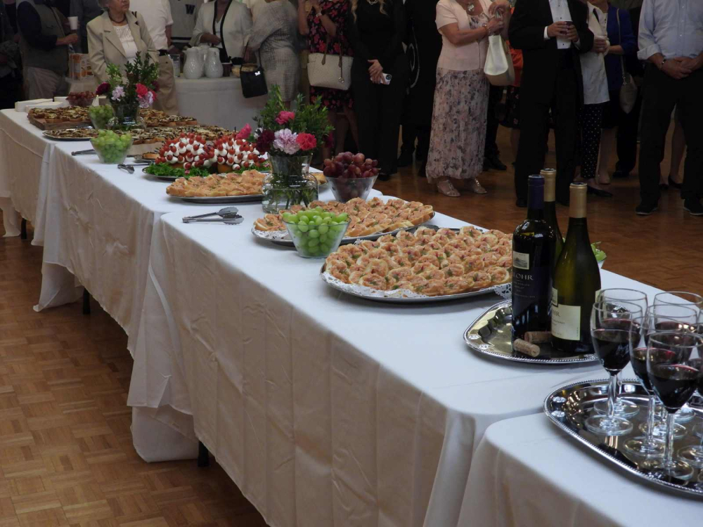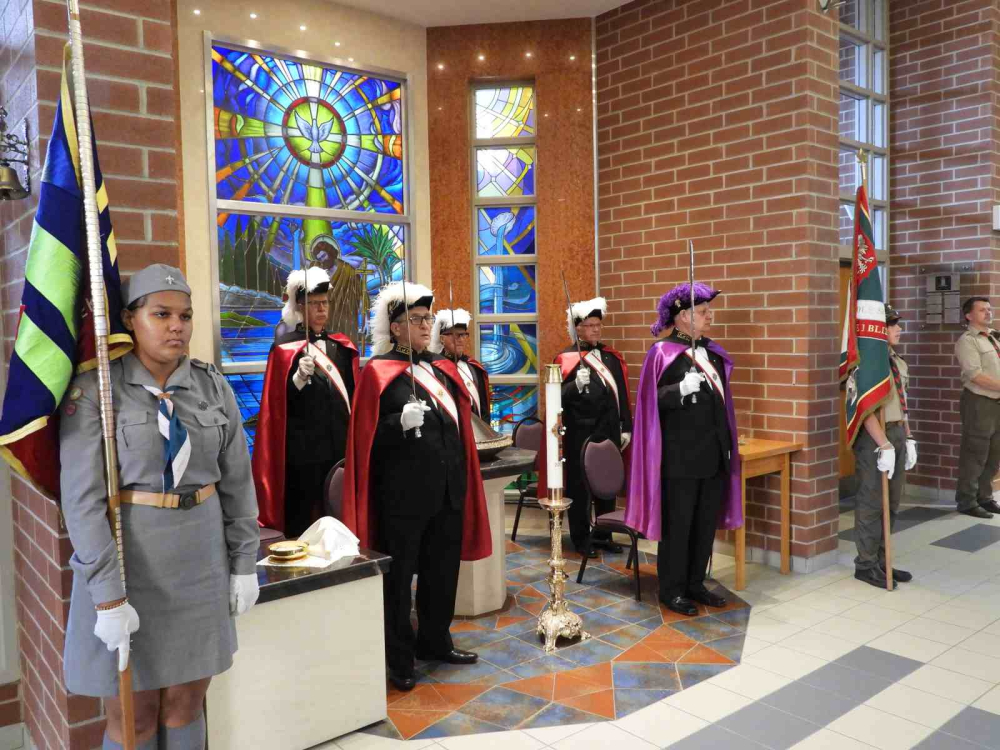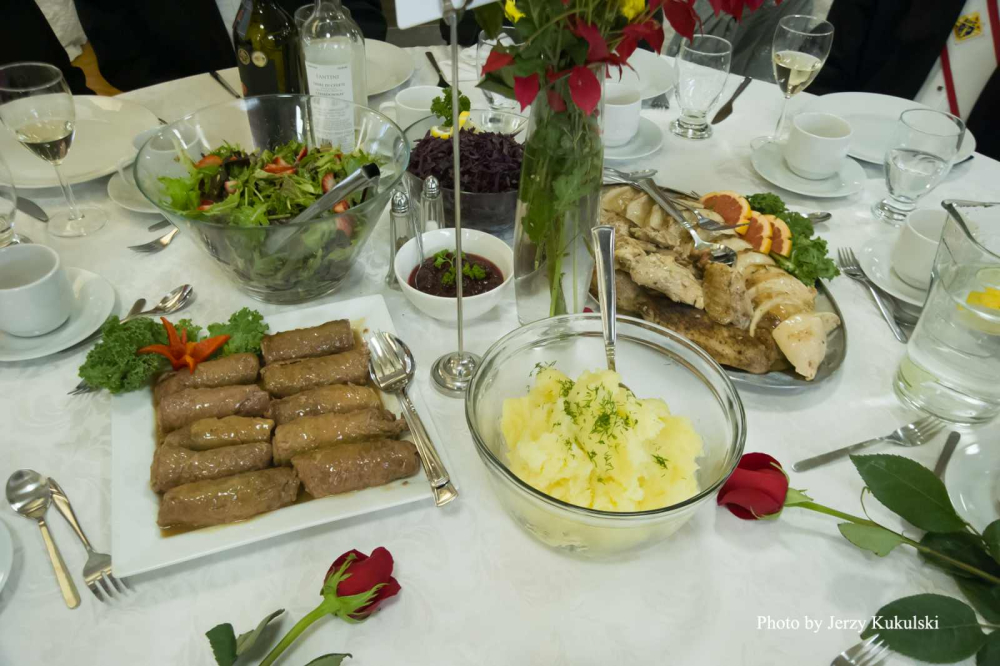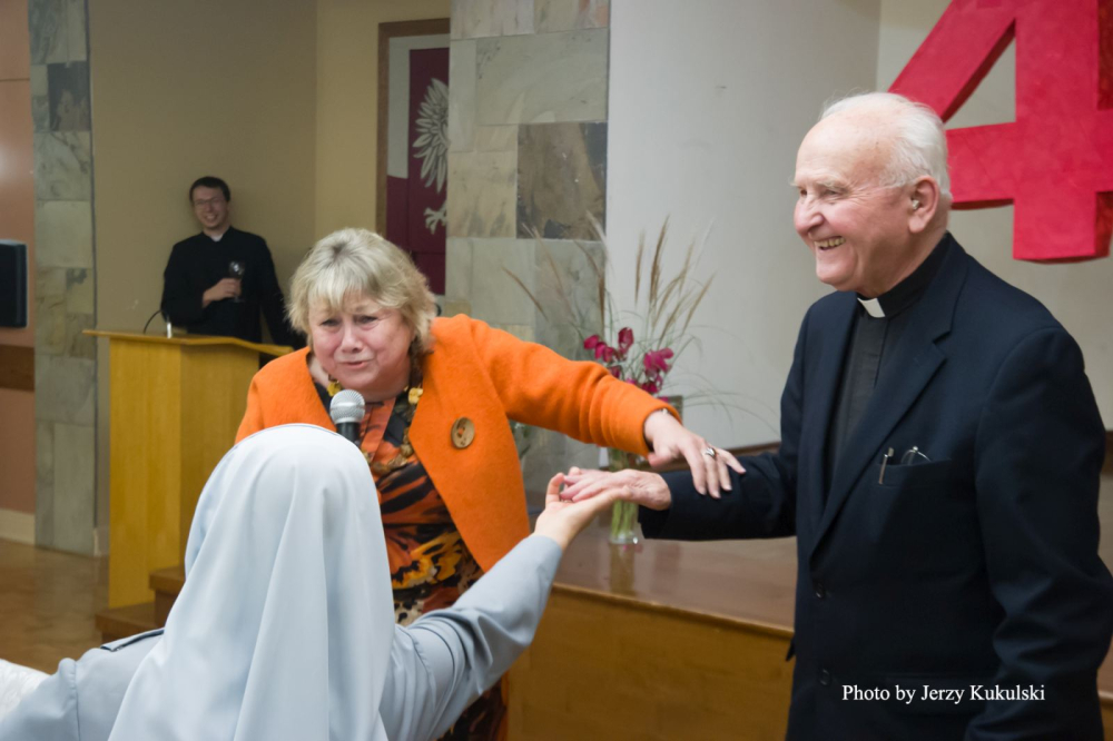 Natomiast w niedzielę 15 października 2023 r. kontynuowaliśmy świętowanie 40. rocznicy powstania naszej polonijnej parafii. Gościliśmy w tym dniu Dostojnego Jubilata – celebrującego 90. urodziny ks. Stanisława Kuczaika SChr, który był drugim proboszczem parafii i który podjął rozpoczęte przez ks. Olbrysia dzieło budowania wspólnoty. Ewangelia tej niedzieli mówiła o uczcie weselnej, która zapowiadała Najświętszą Ofiarę – Mszę Świętą (por. Mt 22,1-14). Po tej niedzielnej Mszy zeszliśmy do sali parafialnej na uroczysty obiad przygotowany przez Rycerzy Kolumba. Serdeczne dziękujemy wszystkim zaangażowanym w organizację tego pięknego wydarzenia. Panu Krzysztofowi Frodymie dziękujemy za pyszny obiad! Cieszymy się, że mogliśmy liczyć na młodzież, która piękne obsługiwała stoły.
