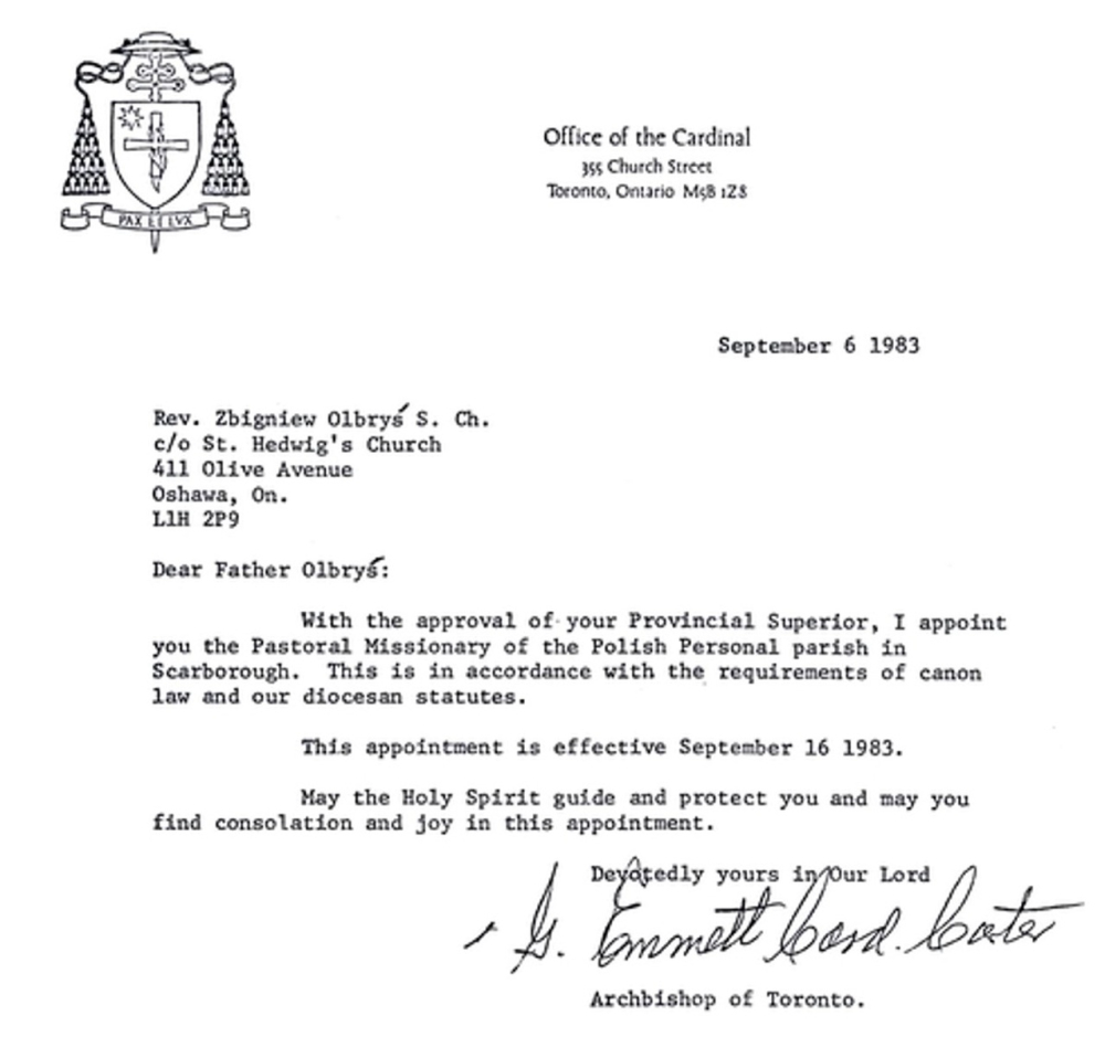 W 2023 roku przypada 40. lecie powstania naszej wspólnoty parafialnej (Matki Bożej Królowej Polski w Scarborough). 6 września 1983 r. arcybiskup Toronto, kard. Gerald Emmet Carter, powołał ks. Zbigniewa Olbrysia, chrystusowca na misjonarza polskiej grupy etnicznej. Natomiast 18 października tego samego roku erygował Polską Misję Katolicką pod wezwaniem Królowej Polski (Our Lady Queen of Poland).