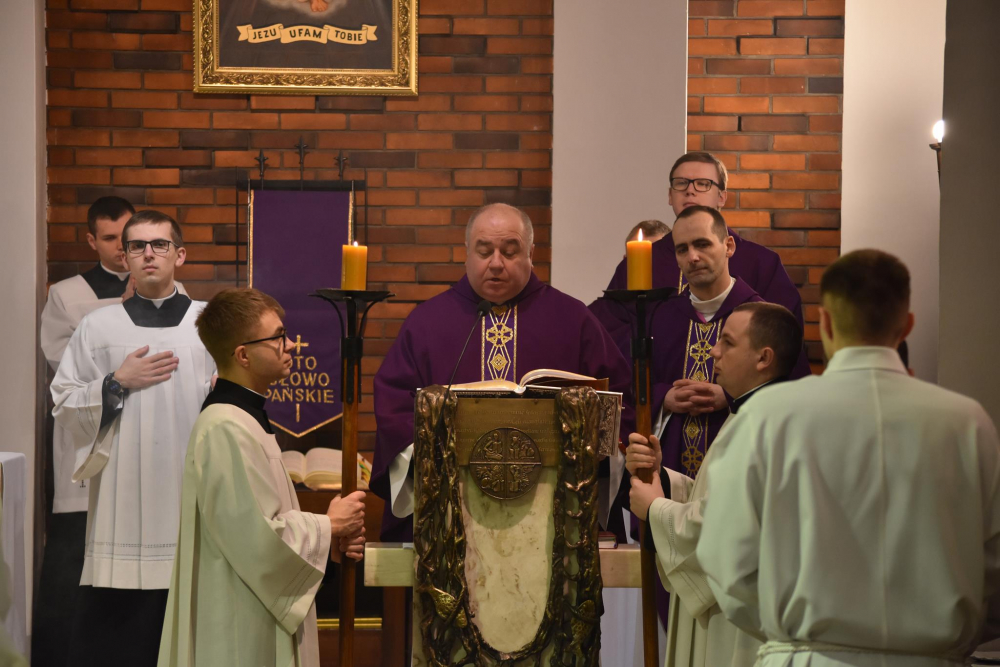 Wspólnej modlitwie dziękczynnej, w której uczestniczyli mieszkańcy domu głównego – bracia, księża i seminarzyści oraz wspomagający jego funkcjonowanie świeccy pracownicy, przewodniczył ks. Bogusław Burgat SChr, wikariusz generalny zgromadzenia. On też wygłosił okolicznościową homilię. Przywołując odczytaną w niedzielnej Ewangelii alegorię o obumierającym ziarnie pszenicznym (por. J 12,24-26) ukazywał zbawczy wymiar męki, śmierci i zmartwychwstania Chrystusa oraz duchowy wymiar życia zakonnego, który jest najdoskonalszym sposobem uczestnictwa w misterium paschalnym.
