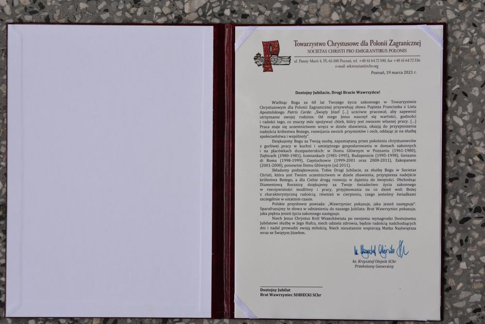 „Chcemy ujrzeć Jezusa” (J 12,21b) – być może zdanie, które usłyszeliśmy w czasie liturgii Mszy Świętej w niedzielę 21 marca 2021 r., w V niedzielę Wielkiego Postu, w dniu, w którym uroczyście celebrowaliśmy jubileuszowe rocznice życia zakonnego naszych braci – br. Wawrzyńca Sobieckiego SChr i br. Jarosława Krusika SChr, mocno zapadło w sercach naszych Jubilatów przed 60. czy 30. laty i zapragnęli je wypełnić przez podjęcie życia jako brat zakonny w Towarzystwie Chrystusowym dla Polonii Zagranicznej.