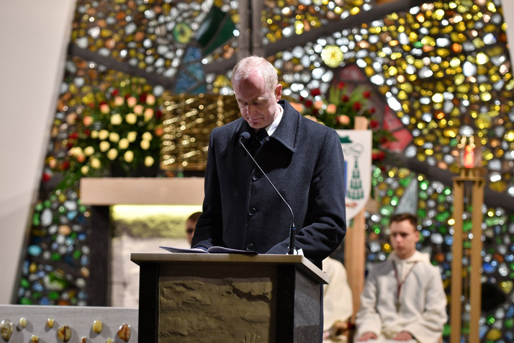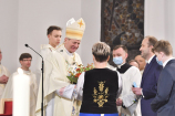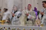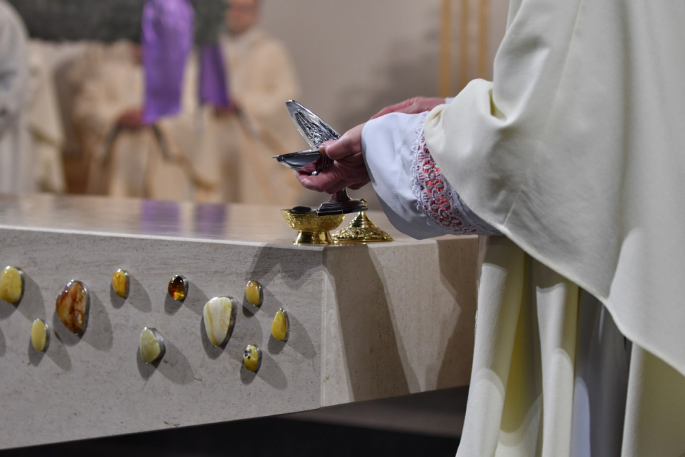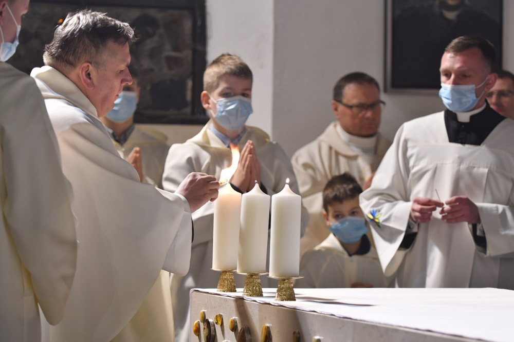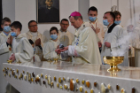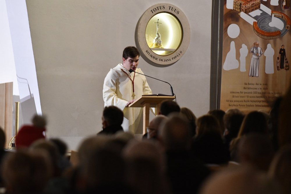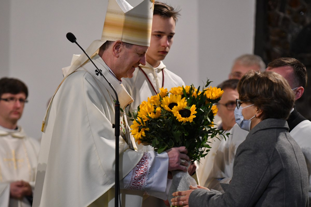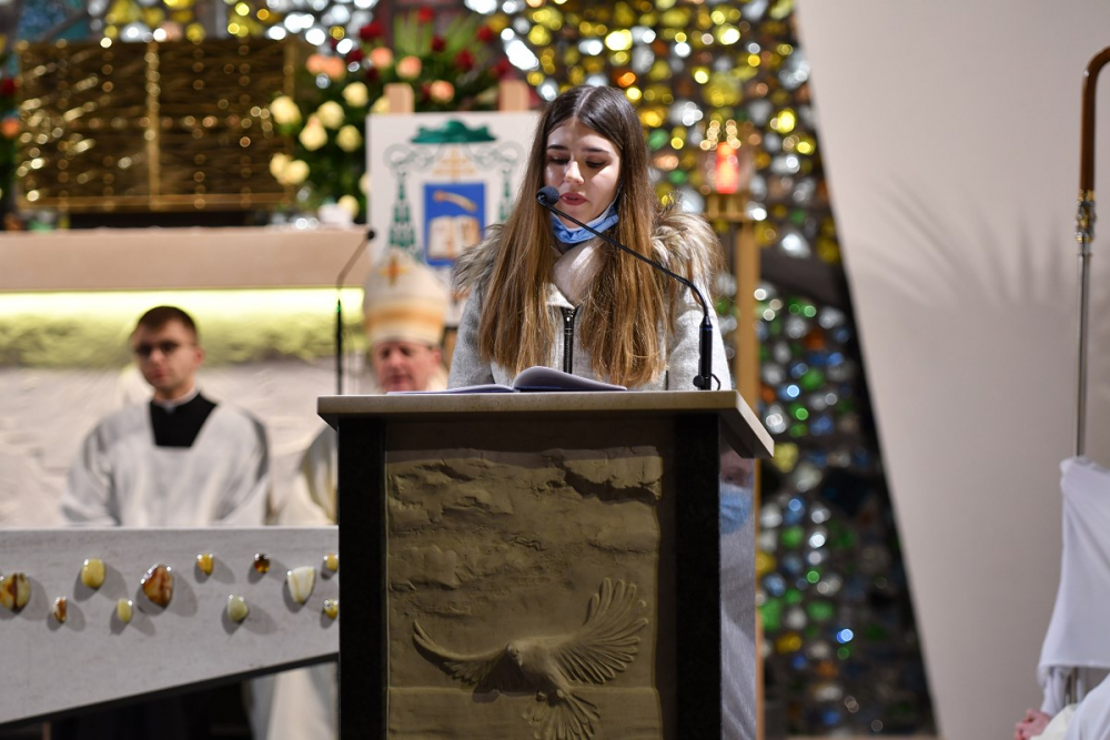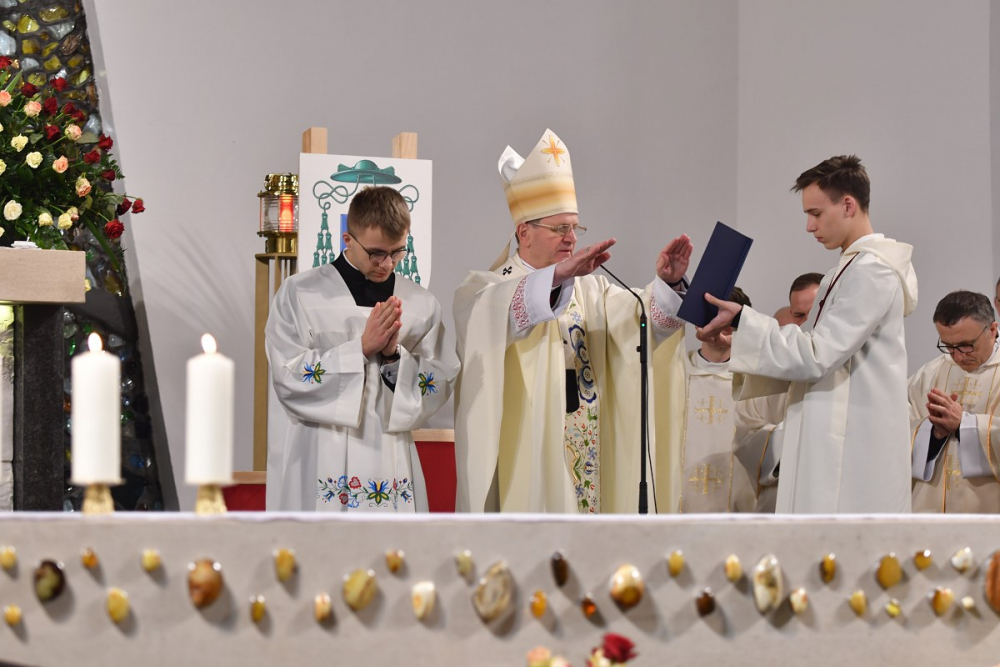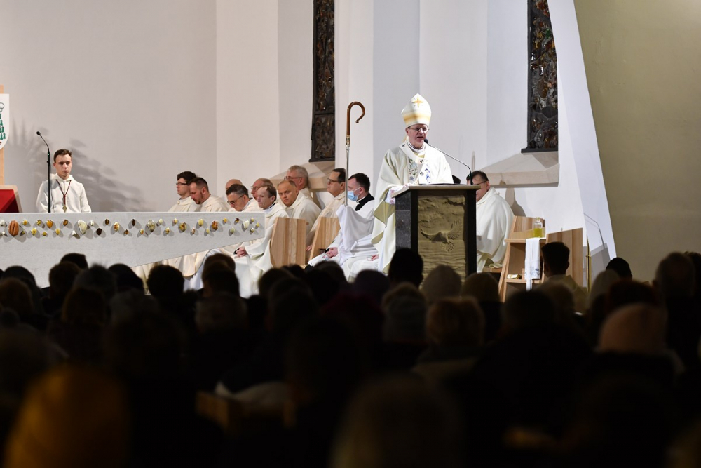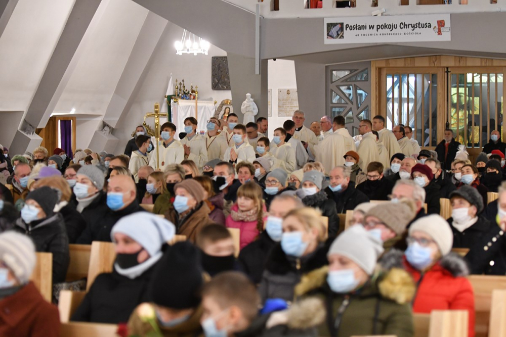 W wygłoszonym słowie przypomniał rolę Maryi w historii zbawienia oraz o naszym powołaniu do świętości, które wybrzmiewa w odczytywanym tego dnia drugim czytaniu (zob. Ef 1,3-6.11-12). Pawłowe słowa o naszym wybraniu w Jezusie Chrystusie, byśmy byli święci i nieskalani (por. Ef 1,4) wraz z maryjnymi przywilejami Jej niepokalanego poczęcia i wniebowzięcia stanowią wezwanie, by to powołanie nieustannie podejmować, biorąc za ideał, wzór oraz wspomożycielkę i opiekunkę Maryję. Może wydawać się to trudne, może niezrozumiałe, ale gdy powierzymy się Panu Bogu: On na pewno dopomoże i udzieli swojej łaski, tak, jak obdarowana, przepełnioną nią została Maryja (por. Łk 1,28). Wielką pomocą w dokonywaniu właściwych wyborów na drogach życia jest nasze uczestnictwo w Eucharystii, albowiem przyjmujemy z ołtarza samego Boga, który pragnie nas przepełniać swoją obecnością i miłością. I dlatego poświęcamy ołtarz, by był miejscem składania i naszego jednoczenia się z Przenajświętszą Ofiarą Jezusa Chrystusa.