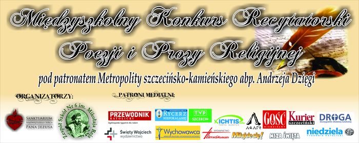 Już po raz szósty Zespół Szkół nr 6 im. Mikołaja Reja (Gastronomik) w Szczecinie i Parafia Najświętszego Serca Pana Jezusa organizują Międzyszkolny Konkurs Recytatorski Poezji i Prozy Religijnej oraz Religijnej Poezji Śpiewanej pod honorowym patronatem Jego Ekscelencji Księdza Arcybiskupa Andrzeja Dzięgi. Konkurs rozpocznie się 11 marca 2014 w siedzibie organizatora, przy ul. Sowińskiego 3, o godz. 9.00.