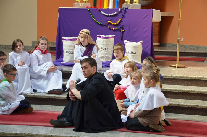 Po modlitwie nastał czas na chwilę relaksu w sklepiku misyjnym, a potem… podział na grupy i do roboty! Kto chciał powiększać wiedzę o Brazylii, kontynuował zajęcia w grupie misyjnej; kto ma w sobie talent plastyczny, robił przepiękne wielkanocne kurczaczki; kto ma w sobie żyłkę aktorską, przygotował pantomimę; kto wie, że najważniejsza jest pomoc innym, kształcił się na zajęciach z pierwszej pomocy; kto lubi dwa razy mocniej się modlić, śpiewał! Dla każdego coś, w czym mógł się sprawdzić. Zajęcia prowadzili najlepsi instruktorzy: harcerze, pani Joanna Szczerba, pan Mariusz Stefański, ks. Włodzimierz i siostra Bogusława
