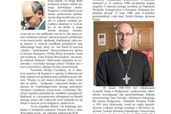 Bogactwo i wielorakość życia naszej brazylijskiej społeczności polonijnej nie dają możliwości na to, aby w jednym wydaniu periodyku zamieścić to wszystko, co się działo w ciągu dwóch miesięcy. Zastanawiam się czy nie nadchodzi czas na to, aby nasze pismo wydawać częściej? Jedynym naszym problemem to nie uroczystości, spotkania, konferencje, jakie mają miejsce w różnych ośrodkach polonijnych tego olbrzymiego kraju, który św. Jan Paweł II nazywał „krajem – kontynentem”. Naszą podstawową sprawą to kwestia finansowa. Polska Misja Katolicka, która jest wydawcą „Echa Polonii Brazylijskiej” nie posiada żadnych funduszy! Skąd mamy pieniądze na wydawanie i rozsyłanie naszego pisma? Pisałem już o tym w przeszłości, dlatego nie chcę się powtarzać.