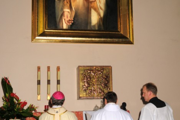 Poświęcenia obrazu dokonał Arcybiskup Metropolita Andrzej Dzięga wraz z Wikariuszem Generalnym Towarzystwa Chrystusowego ks. Bogusławem Burgatem SChr. Podczas uroczystej Mszy św. do sanktuarium wniesione zostały również relikwie apostołki Bożego Serca – św. Małgorzaty Marii Alacoque, które pobłogosławił Wikariusz Generalny Towarzystwa Chrystusowego.