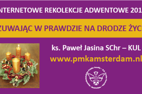 Tradycyjnie już Polska Misja Katolicka w Amsterdamie prowadzona przez chrystusowca ks. Krzysztofa Obiedzińskiego zaprasza na Internetowe rekolekcje adwentowe dla Polonii i nie tylko. W tym roku poprowadzi je nasz współbrat ks. Paweł Jasina - doktorant na Katolickim Uniwersytecie Lubelskim.