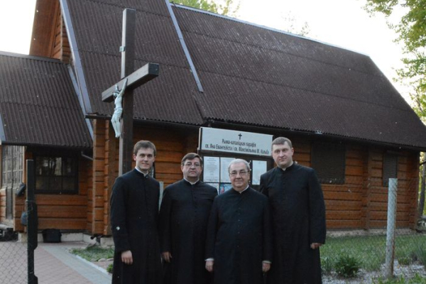 W dniach 8-10 maja 2015 roku Przełożony Generalny ks. Ryszard Głowacki TChr przebywał z wizytą w parafii św. Jana Ewangelisty i św. Maksymiliana M. Kolbe w Mińsku na Białorusi, gdzie duszpasterstwo prowadzą ks. Oleg Szpieć TChr i ks. Włodzimierz Maruszewski TChr. Księdzu Generałowi towarzyszył Ekonom Generalny ks. Zbigniew Kutnik TChr. W pierwszym dniu wizyty Przełożeni odwiedzili parafię w Hancewiczach, gdzie proboszczem jest ks. Andrzej Szoda TChr. Następnego dnia Przełożony Generalny spotkał się najpierw z metropolitą mińsko-mohylewskim ks. abem Tadeuszem Kondrusiewiczem, a później z Ambasadorem RP w Mińsku panem Leszkiem Szerepką. Ostatni dzień pobytu – niedziela – był dobrą okazję, aby poznać parafię, modlić się się z wiernymi podczas każdej Eucharystii i nabożeństwa majowego w tymczasowej kaplicy. Parafianie serdecznie podziękowali ks. Generałowi za to, że we wrześnie ubiegłego roku Towarzystwo Chrystusowe objęło ich opieką duszpasterską i wyrazili swoją nadzieję, że dzięki współpracy i wspólnym wysiłkom zostanie wybudowany tak bardzo potrzebny kościół parafialny i dom zakonny księży chrystusowców.