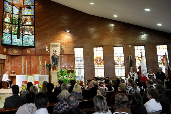 Zgromadzeni w godzinach porannych przed kościołem pw. Matki Bożej Radości w Mostoles powitali poczty sztandarowe, które uroczyście wniesiono na Mszę Świętą. Liturgię poprowadził zaproszony z Poznania ks. Wiesław Wójcik - dyrektor Instytutu Duszpasterstwa Emigracyjnego. Licznie zgromadzeni rodacy, niektórzy ubrani w stroje krakowskie, przedstawiciele organizacji polonijnych i Stowarzyszenia „Dom Polski”, konsul generalny RP z Madrytu, pan Krzysztof Czaplicki z małżonką modlili się za Ojczyznę i o wstawiennictwo nowego Błogosławionego w sprawach Polonii. W kazaniu ks. Wójcik, nawiązując do Ewangelii, podkreślił, że każdy człowiek zostaje przez Boga obdarowany różnymi talentami, jedni więcej, inni mniej i są one różnorodne. Naszą siłą na emigracji jest wiara, która jest tym szczególnym talentem, a nosimy ją w glinianych naczyniach. Kaznodzieja przypomniał słowa bł. Jana Pawła II, który w 1982 r. do Polonii hiszpańskiej powiedział: „Cieszę się, że w tej wspólnocie ojczystej, polonijnej i rodzinnej zarazem, zachowujecie wraz z całą tradycją polską również to, co jest osią i busolą tej tradycji. To znaczy naszą wiarę. Wiarę Chrystusa i naukę Jego katolickiego Kościoła".