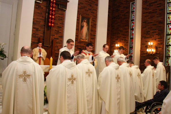 Przed błogosławieństwem ks. Wiesław Wójcik – dyrektor Instytutu Duszpasterstwa Emigracyjnego wręczył każdemu z neoprezbiterów „Mszał rzymski” z życzeniem, aby zawsze godnie i pięknie sprawowali święte tajemnice naszej wiary. Na zakończenie Eucharystii neoprezbiterzy udzielili wszystkim prymicyjnego błogosławieństwa. Zdjęcia tutaj.