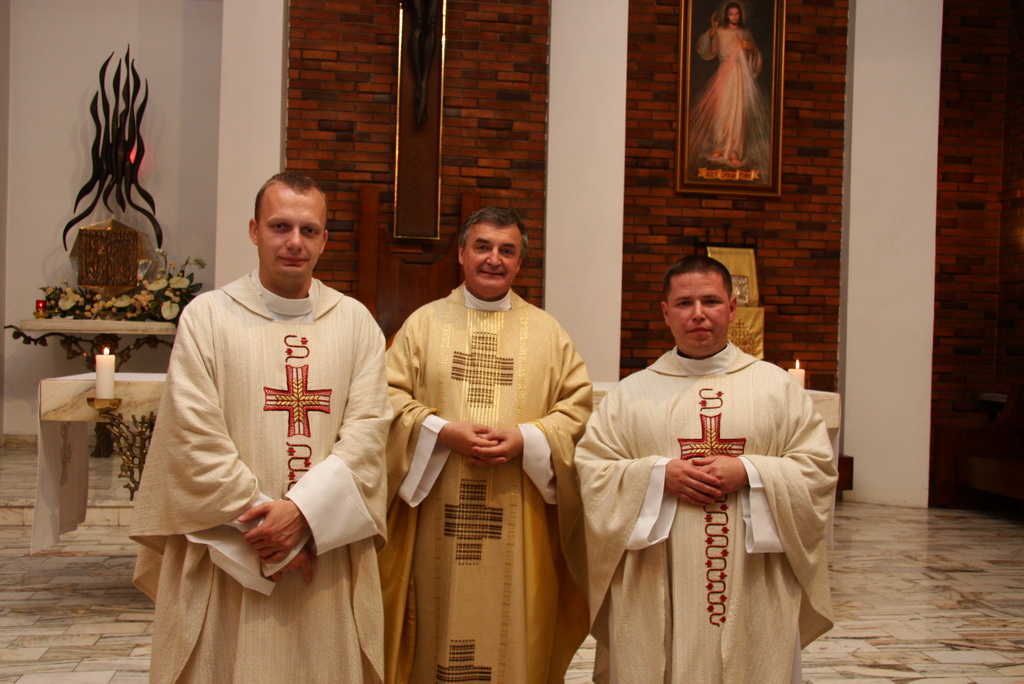 Rozpoczynając o godz. 18.00 uroczystą Mszę Świętą przełożony generalny ks. Tomasz Sielicki mówił: „To bardzo ważny dzień w waszym życiu księże Krzysztofie i księże Mateuszu i jednocześnie normalna, wręcz rutynowa sprawa w 80-letniej historii naszego zgromadzenia. […] Będziecie prawdziwymi misjonarzami spełniając posługę zgodnie z naszym charyzmatem”. Bardzo charakterystyczne, jak na taką uroczystość, było grono koncelebransów. Obok misjonarzy stanęli bowiem najwyżsi przełożeni zgromadzenia, złoci i srebrni jubilaci w kapłaństwie, neoprezbiterzy oraz misjonarze z Brazylii, Francji i Niemiec. W Eucharystii uczestniczyli oczywiście klerycy i mieszkańcy Domu Głównego.